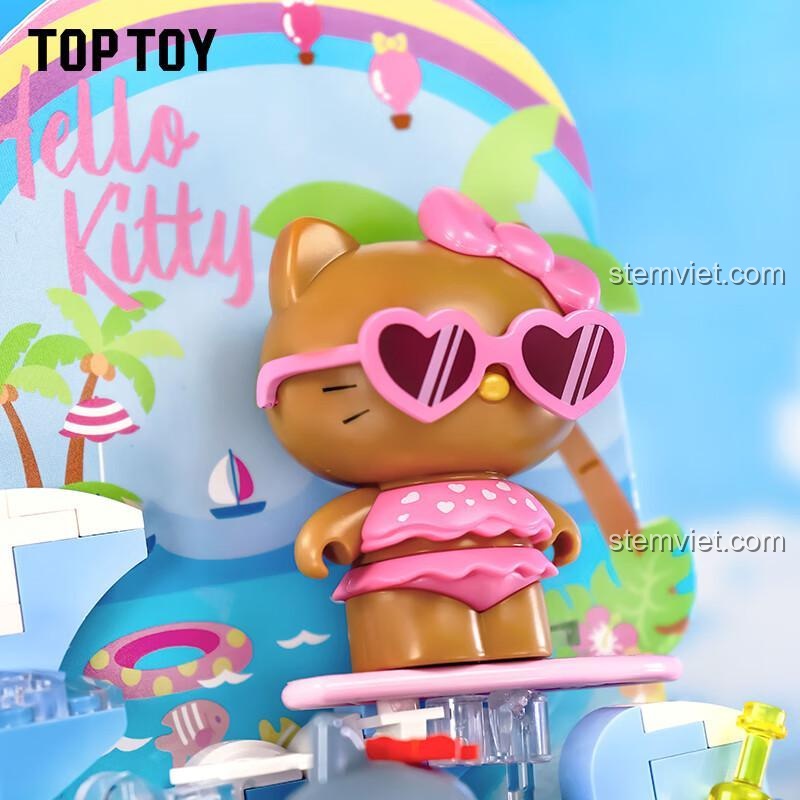TOP TOY TC2325 – Bộ Lắp Ráp Hello Kitty Lướt Sóng Mùa Hè: Mô Phỏng Cảnh Lướt Sóng & Hello Kitty Da Nâu Độc Đáo