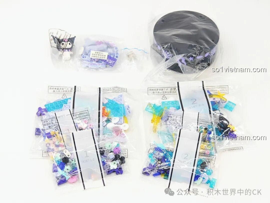 • Minifigure Kuromi: Nhân vật Kuromi được thiết kế đáng yêu, với trang phục lấy cảm hứng từ đại dương, là điểm nhấn trung tâm của toàn bộ mô hình.