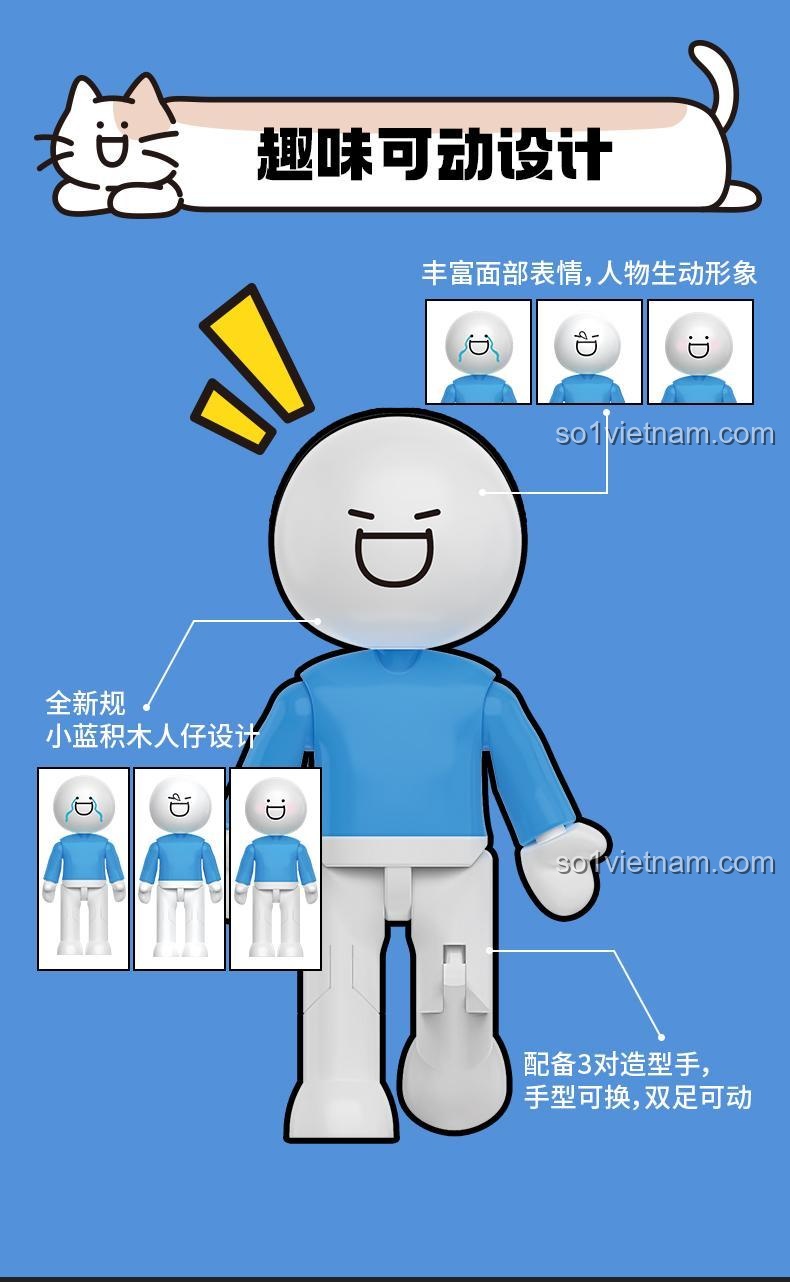 Điểm nhấn đặc biệt là các nhân vật Tiểu Lam và Boss có thể thay đổi tay, cho phép bé tạo ra nhiều tư thế và hành động khác nhau.