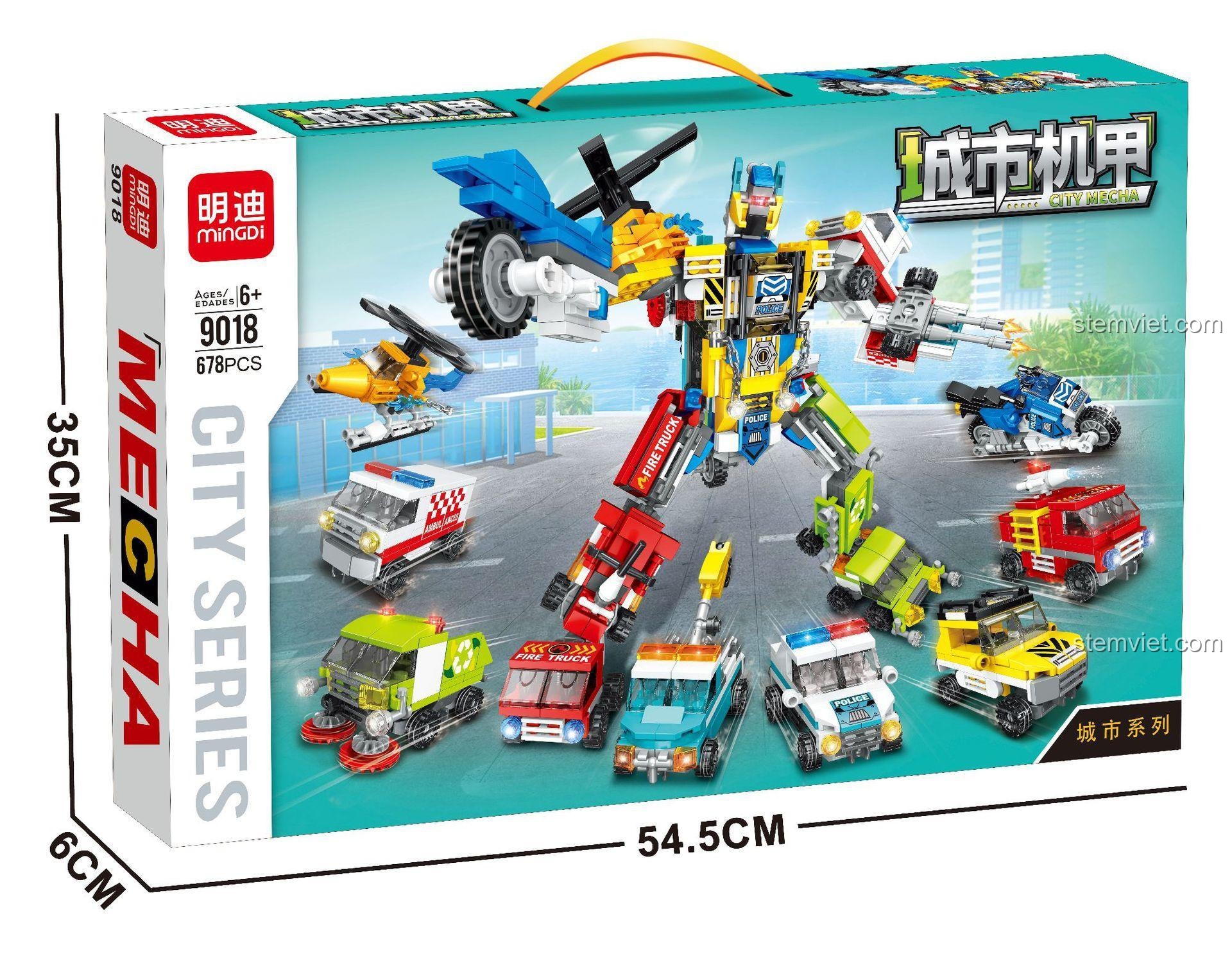 Trải Nghiệm 8 Xe Hợp Thể Thành 1 Robot Với Bộ Lắp Ráp Mingdi 9018 Robot Biệt Đội Thành Phố (678 Mảnh Ghép)