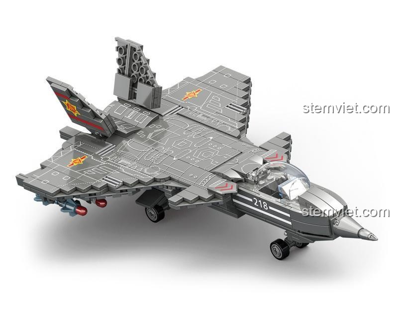 Vẻ đẹp của bộ xếp hình J-20 Uy Long nằm ở sự tinh xảo và chân thực đến từng chi tiết. Khoác lên mình màu sơn xám đặc trưng của máy bay tàng hình, mô hình toát lên vẻ uy nghiêm, mạnh mẽ và đầy bí ẩn. Với tỉ lệ 1:65, sau khi hoàn thành, bé sẽ sở hữu một chiếc J-20 dài 30.6 cm, rộng 19.2 cm và cao 8.2 cm – một kích thước hoàn hảo để trưng bày trên bàn học hoặc cầm trên tay để ‘thực hiện nhiệm vụ’. Các nhà thiết kế của CAYI đã rất khéo léo khi tái hiện lại những đường nét khí động học phức tạp, từ phần mũi nhọn đặc trưng, cặp cánh vịt (canard) linh hoạt cho đến phần cánh đuôi kép có thể điều chỉnh góc độ. Buồng lái được trang bị kính chắn gió trong suốt, cho phép bé đặt minifigure phi công vào vị trí chỉ huy. Đặc biệt, khoang chứa tên lửa dưới bụng có thể mở ra, hé lộ vũ khí sẵn sàng chiến đấu, làm tăng thêm tính chân thực và hấp dẫn cho những giờ phút vui chơi của bé.