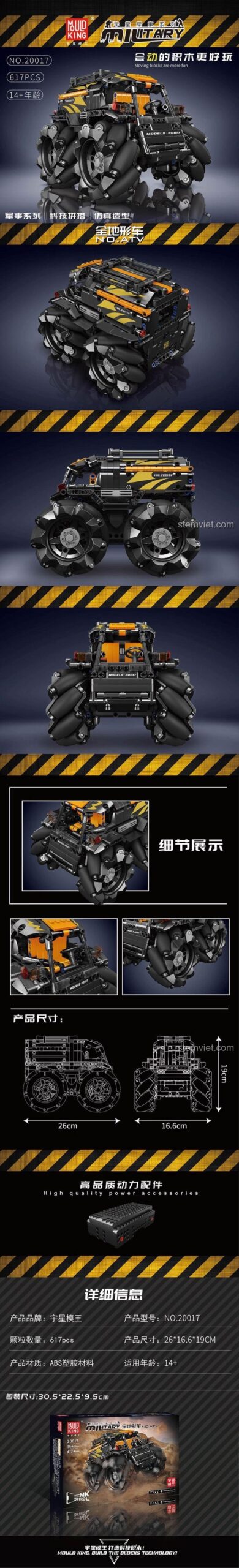 Chào bạn, một người đam mê kỹ thuật và luôn tìm kiếm những thử thách mới! Bạn có muốn sở hữu một chiếc xe địa hình không chỉ mạnh mẽ, hầm hố mà còn có khả năng di chuyển thách thức mọi định luật vật lý thông thường không? Hãy cùng khám phá bộ lắp ráp Xe địa hình ATV 20017, một kiệt tác công nghệ đến từ Mould King. Đây không chỉ là một món đồ chơi, mà là một dự án STEM thực thụ, nơi bạn được tiếp xúc với công nghệ bánh xe Mecanum – một phát minh kỹ thuật cho phép phương tiện di chuyển đa hướng một cách kỳ diệu. Hãy tưởng tượng chiếc xe của bạn có thể lướt ngang, đi chéo, hay xoay tròn 360 độ tại chỗ một cách mượt mà. Đó chính là trải nghiệm độc nhất mà sản phẩm này mang lại.