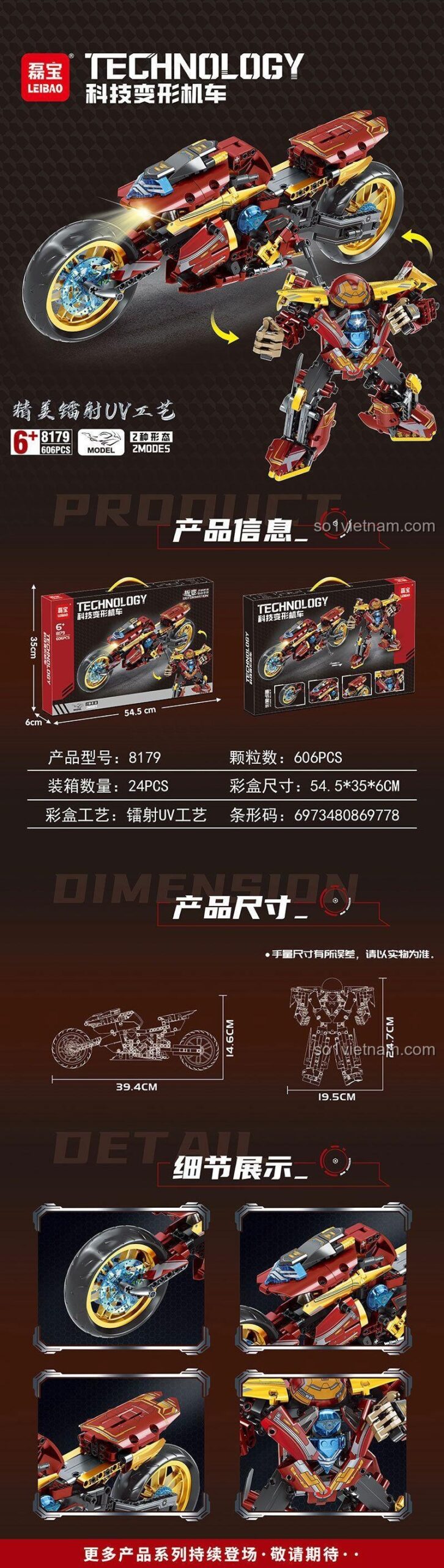 Nhờ công nghệ sản xuất chính xác, các mảnh ghép của LEIBAO có độ khít rất cao. Sau khi lắp ráp hoàn chỉnh, cả hai dạng mô tô và robot đều rất chắc chắn, cứng cáp, bé có thể thoải mái cầm chơi, di chuyển và tạo dáng mà không lo bị rơi rụng các chi tiết.