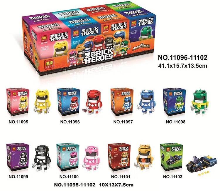 Bộ đồ chơi lắp ráp Anh Hùng Power Rangers BELA 11100 bao gồm tổng cộng 8 mô hình Power Rangers BrickHeadz độc đáo, cùng với một chiếc Xe Rồng đi kèm với Power Ranger Xanh Lá, tạo nên một bộ sưu tập hoàn chỉnh và đa dạng.