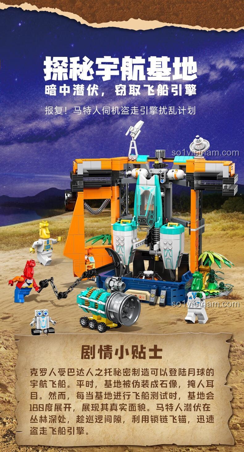 Chào bạn, có bao giờ bạn tưởng tượng về một thế giới nơi các bộ lạc thời tiền sử lại sở hữu công nghệ để du hành vũ trụ không? Đó chính là câu chuyện hấp dẫn đằng sau bộ lắp ghép Căn cứ vũ trụ của bộ lạc. Trên một hòn đảo bí ẩn, huyền thoại về “Kho Báu Mặt Trăng” đã châm ngòi cho cuộc cạnh tranh giữa ba bộ lạc: người Matren dũng mãnh, người Badan quả cảm và người Keron thông thái. Người Keron, với trí tuệ vượt trội, đã bí mật hợp tác với người Badan để chế tạo một con tàu vũ trụ, với hy vọng chạm tới các vì sao. Họ ngụy trang căn cứ của mình thành một tượng đá khổng lồ để che mắt kẻ thù. Nhưng âm mưu của họ không qua được mắt người Matren. Lợi dụng lúc căn cứ mở ra để thử nghiệm, bộ lạc Matren đã lên kế hoạch đột nhập và đánh cắp động cơ – trái tim của con tàu. Liệu kế hoạch chinh phục không gian có thành công, hay sẽ bị phá hủy bởi lòng đố kỵ? Với bộ đồ chơi này, chính bạn sẽ là người quyết định kết cục của câu chuyện phiêu lưu đầy kịch tính này.