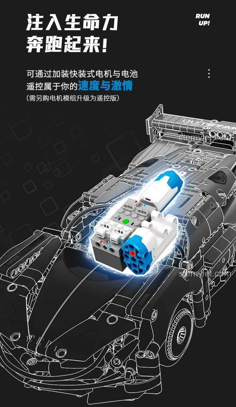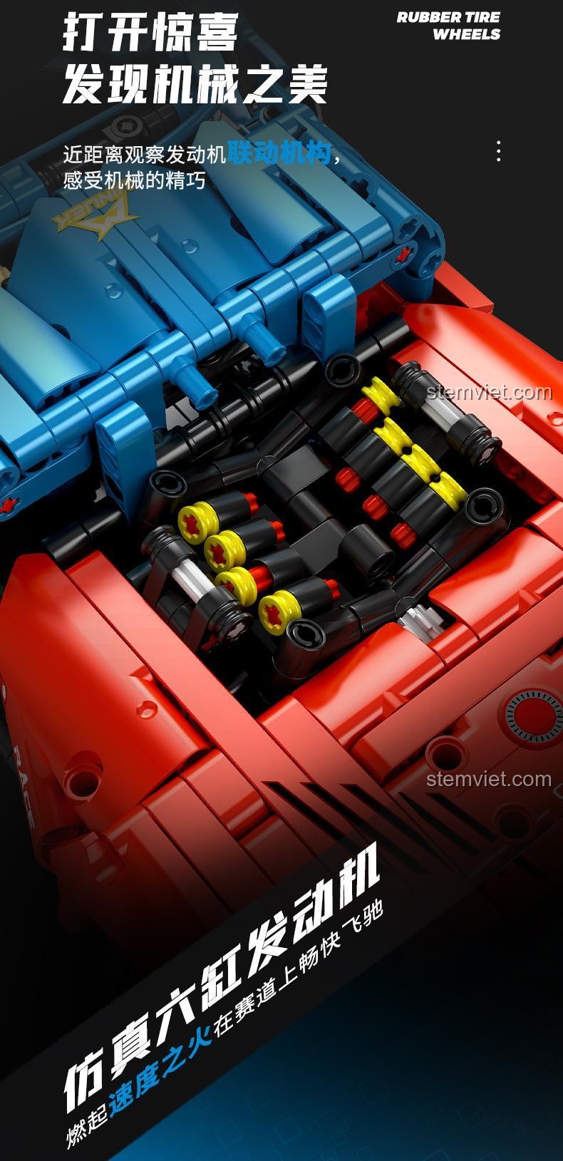 Không chỉ là một mô hình tĩnh, bộ lắp ráp SEMBO 715004 Mazda Furai còn sở hữu nhiều tính năng tương tác hấp dẫn, biến nó thành một đồ chơi mô hình sống động. Điểm nhấn đặc biệt là khả năng nâng cấp thành phiên bản điều khiển từ xa (RC) bằng cách mua thêm bộ động cơ và pin. Điều này mở ra một thế giới trải nghiệm mới, cho phép bé điều khiển chiếc xe đua Mazda Furai của mình chạy bon bon, tăng thêm phần kịch tính và hứng thú. Bên cạnh đó, mô hình còn có động cơ mô phỏng 6 xi lanh tinh xảo, hệ thống lái liên kết giúp vô lăng điều khiển bánh trước, và các chi tiết bánh xe đua chuyên nghiệp với đĩa phanh gốm và kẹp phanh. Tất cả những tính năng này không chỉ tăng cường giá trị chơi mà còn giúp bé hiểu hơn về cơ chế hoạt động của một chiếc xe đua thực thụ. Đây là một STEM toy SEMBO đích thực, kết hợp giải trí và giáo dục một cách hoàn hảo.