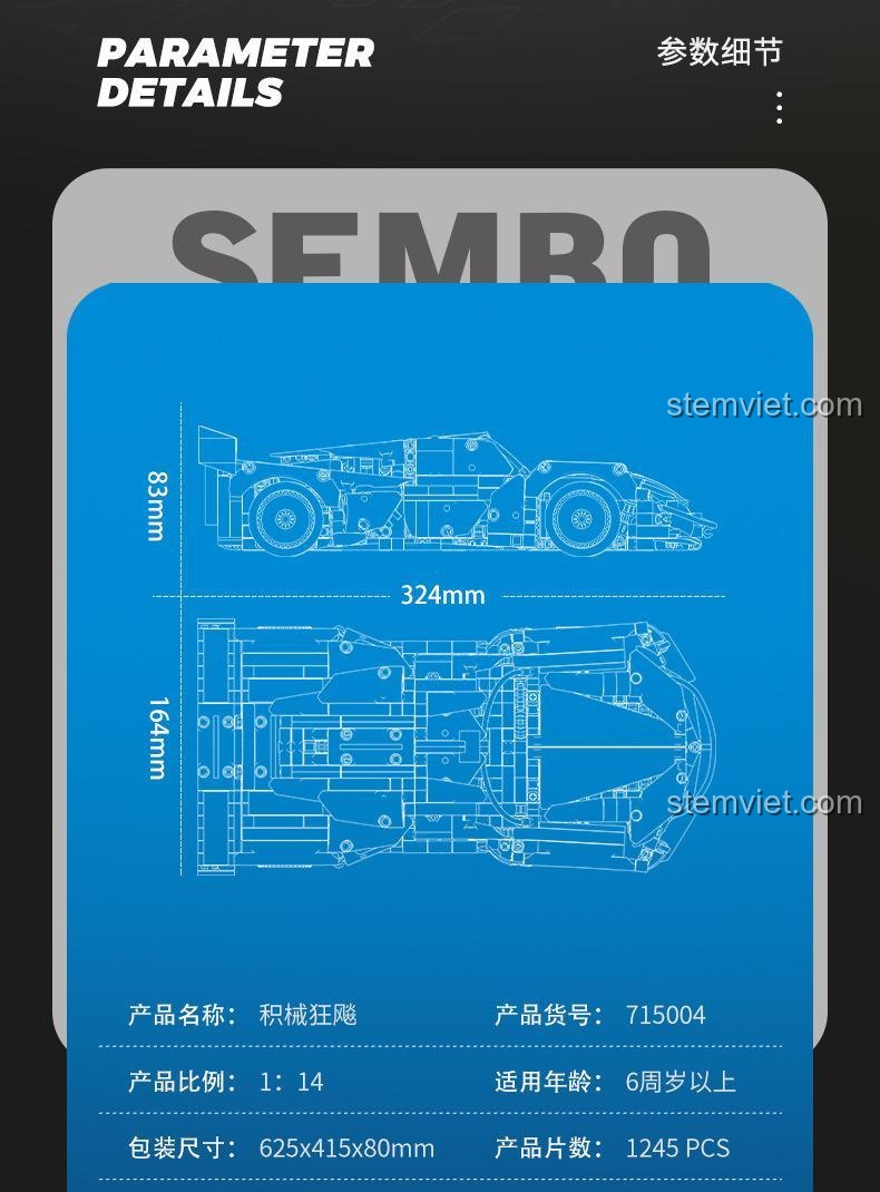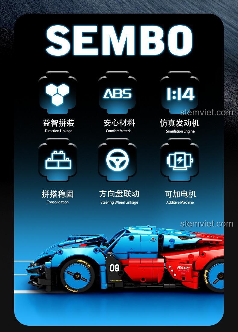LEGO® là thương hiệu đã đăng ký của The LEGO Group. SEMBO và sản phẩm này không được The LEGO Group tài trợ, ủy quyền hoặc chứng nhận. Sản phẩm của SEMBO được thiết kế để tương thích với các hệ thống xếp hình khối tiêu chuẩn.