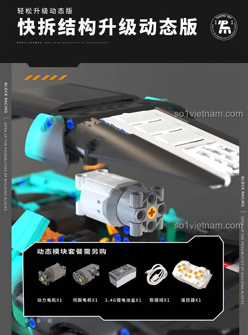 Và đây là phần hấp dẫn nhất: bộ đồ chơi này được thiết kế với cấu trúc “tháo lắp nhanh” để dễ dàng nâng cấp lên phiên bản điều khiển từ xa (RC). Chỉ cần mua thêm bộ module động (bán riêng), mẹ và bé có thể cùng nhau biến siêu xe tĩnh thành một quái thú tốc độ thực sự, có thể điều khiển tiến, lùi, rẽ trái, phải bằng remote. Đây là một tính năng tuyệt vời, giúp kéo dài sự hứng thú của bé với món đồ chơi, từ niềm vui lắp ráp tĩnh đến sự phấn khích của việc điều khiển động. Trải nghiệm lắp ráp và nâng cấp này chính là một bài học thực tế về cơ khí và điện tử, vô cùng bổ ích cho sự phát triển tư duy của trẻ.