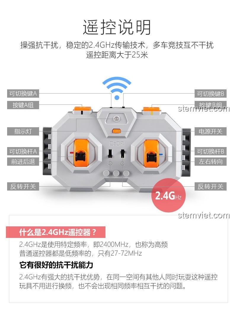 Nhờ công nghệ 2.4GHz tiên tiến, tay cầm điều khiển có thể hoạt động ổn định ở khoảng cách lên tới 25 mét, cho bé không gian rộng lớn để thỏa sức sáng tạo và vui chơi.