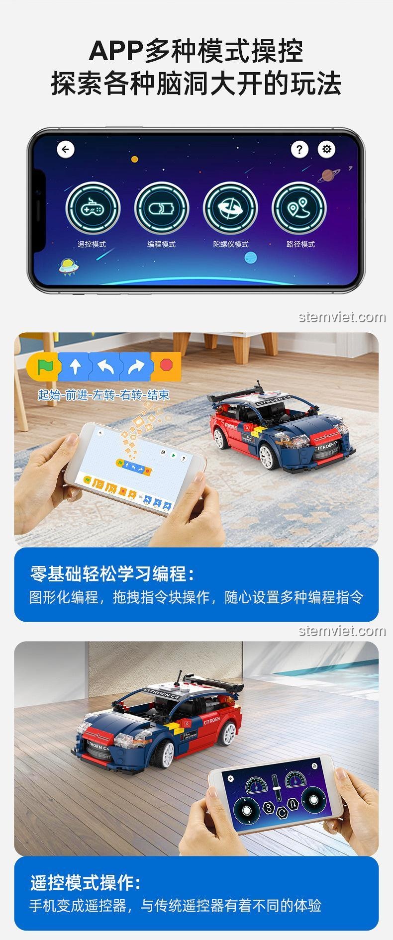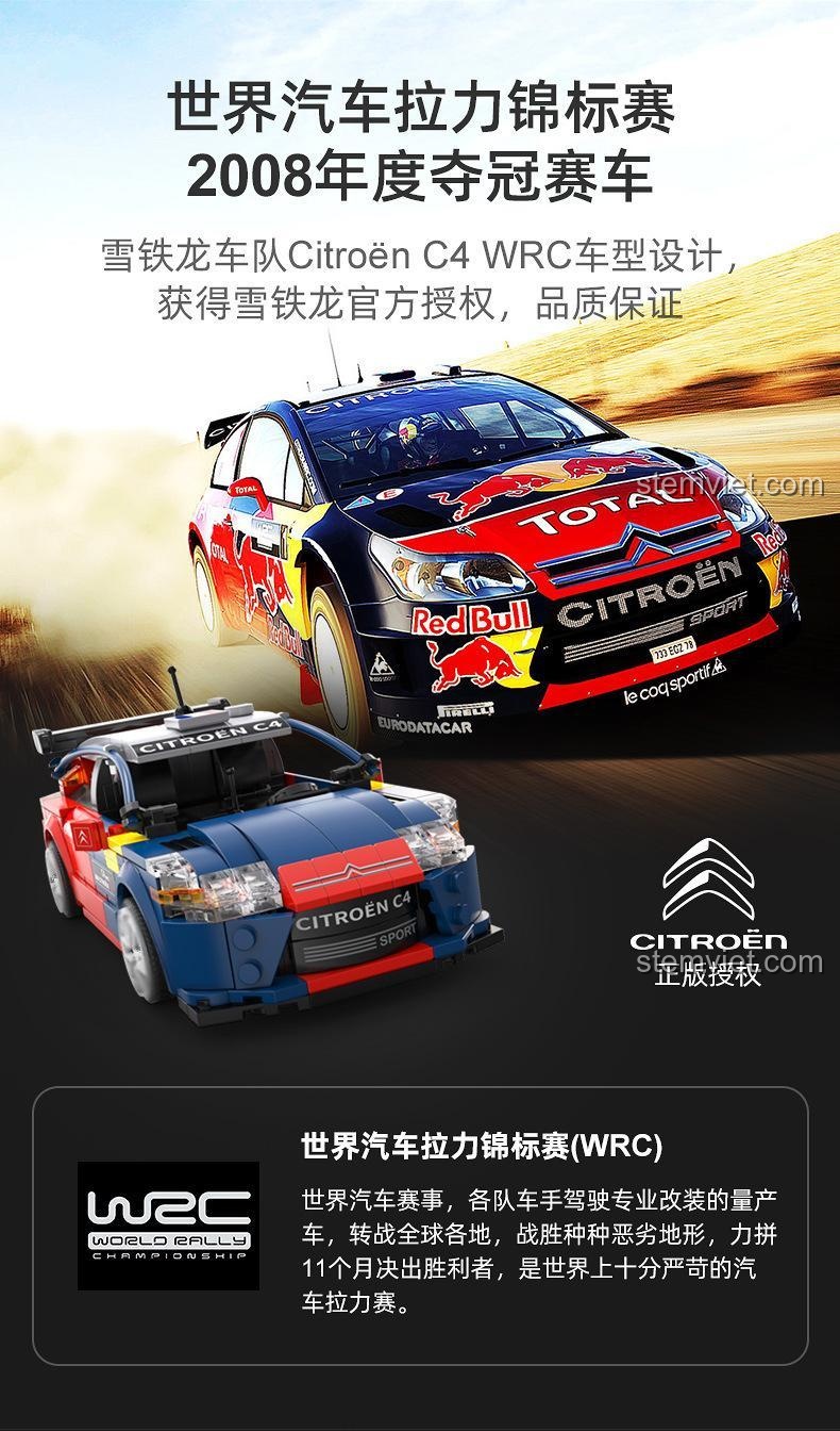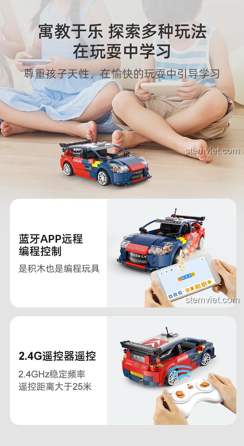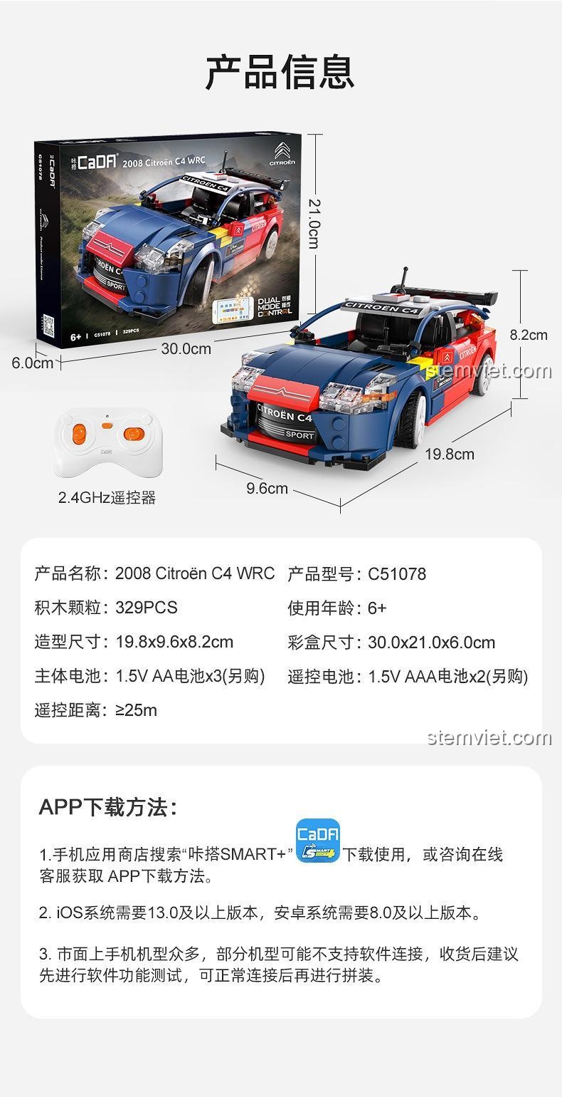 Trải Nghiệm Điều Khiển Từ Xa & Lập Trình App Với bộ lắp ráp CaDA C51078 Xe Đua Citroën C4 WRC 2008 (329 mảnh ghép)