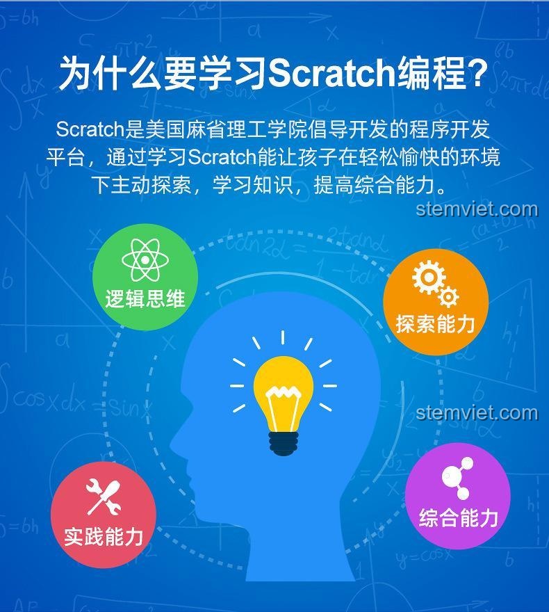 Hoàn toàn không khó mẹ nhé! Lập trình Scratch được thiết kế đặc biệt cho trẻ em với giao diện kéo-thả trực quan. Thay vì gõ những dòng code phức tạp, bé chỉ cần chọn và ghép các khối lệnh có sẵn (như ‘tiến lên’, ‘rẽ trái’, ‘dừng lại’) để tạo thành một chương trình. Đây là cách tuyệt vời để bé làm quen với tư duy lập trình một cách tự nhiên và vui vẻ.