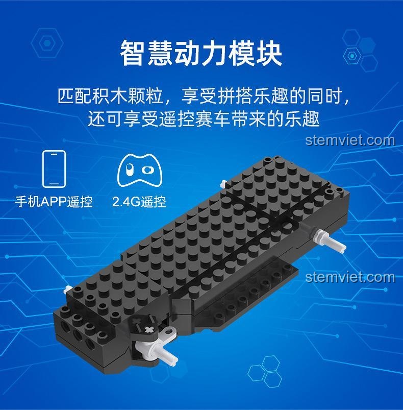 Đây chính là điểm khiến bộ lắp ráp C51078 trở nên khác biệt và hấp dẫn mọi cậu bé hiếu động. Sản phẩm được trang bị một mô-đun năng lượng thông minh, mang đến hai chế độ điều khiển linh hoạt. Bé có thể dùng tay cầm điều khiển 2.4Ghz đi kèm để trải nghiệm cảm giác lái xe truyền thống, với khoảng cách lên đến 25m. Hoặc, bé có thể kết nối xe với điện thoại thông minh qua Bluetooth và khám phá ứng dụng điều khiển chuyên dụng. Ứng dụng này mở ra một thế giới mới với 4 chế độ chơi sáng tạo: chế độ điều khiển ảo, chế độ con quay hồi chuyển (nghiêng điện thoại để lái xe), chế độ vẽ đường đi (vẽ một lộ trình trên màn hình và xe sẽ tự động đi theo), và đặc biệt nhất là chế độ lập trình Scratch. Bé có thể kéo-thả các khối lệnh để tạo ra một chuỗi hành động cho xe, một bước khởi đầu tuyệt vời vào thế giới lập trình đầy thú vị.