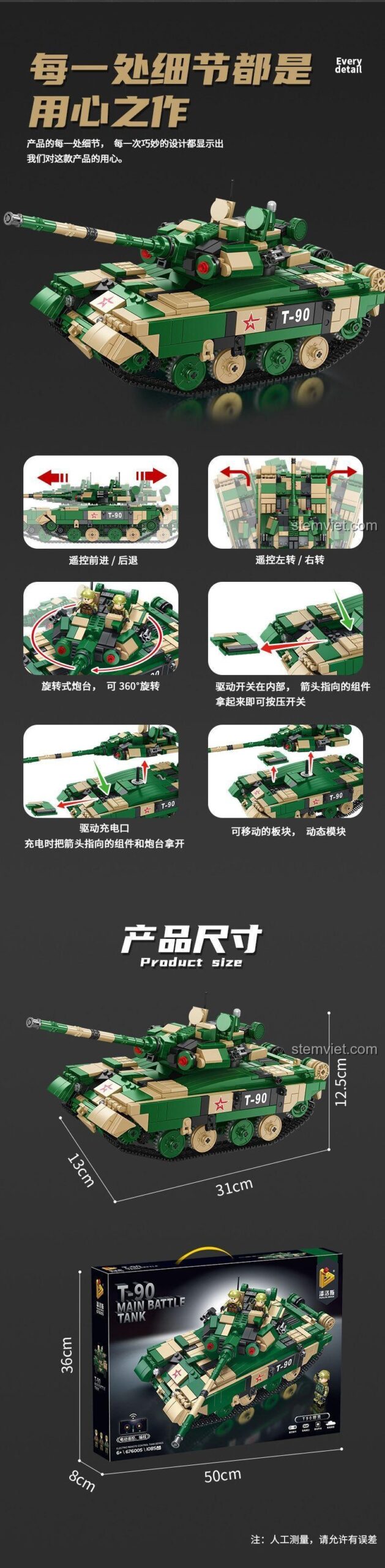 ⚙️ Giải Phóng Chiến Trường Với Tính Năng Điều Khiển Từ Xa Của Bộ Lắp Ghép Xe Tăng T-90!
