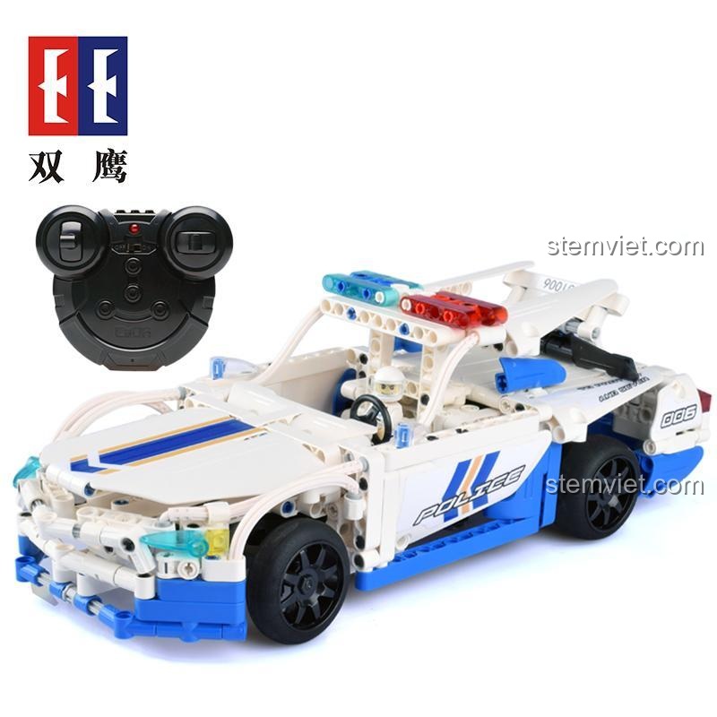 Điểm nhấn đắt giá nhất của bộ đồ chơi này chính là khả năng điều khiển từ xa. Thay vì chỉ là một mô hình tĩnh để trưng bày, Siêu xe cảnh sát Double Eagle C51006 biến thành một cỗ máy tốc độ thực thụ dưới sự điều khiển của bé. Được trang bị bộ điều khiển 2.4GHz hiện đại, chiếc xe có thể di chuyển linh hoạt tiến, lùi, rẽ trái, rẽ phải một cách mượt mà và chính xác. Tần số 2.4G giúp chống nhiễu hiệu quả, cho phép nhiều bé cùng chơi mà không lo bị trùng sóng. Bộ sản phẩm đi kèm pin sạc và dây sạc USB, vô cùng tiện lợi và tiết kiệm. Mẹ chỉ cần sạc đầy là bé có thể vui chơi thỏa thích, không cần phải tốn kém chi phí mua pin liên tục. Việc sử dụng khung gầm liền khối (integrated chassis) cũng là một ưu điểm lớn, giúp đơn giản hóa quá trình lắp ráp phần cơ điện phức tạp, rất phù hợp cho các bé từ 6 tuổi mới làm quen với dòng đồ chơi Technic, giúp con không bị nản lòng và có thể nhanh chóng tận hưởng thành quả của mình.