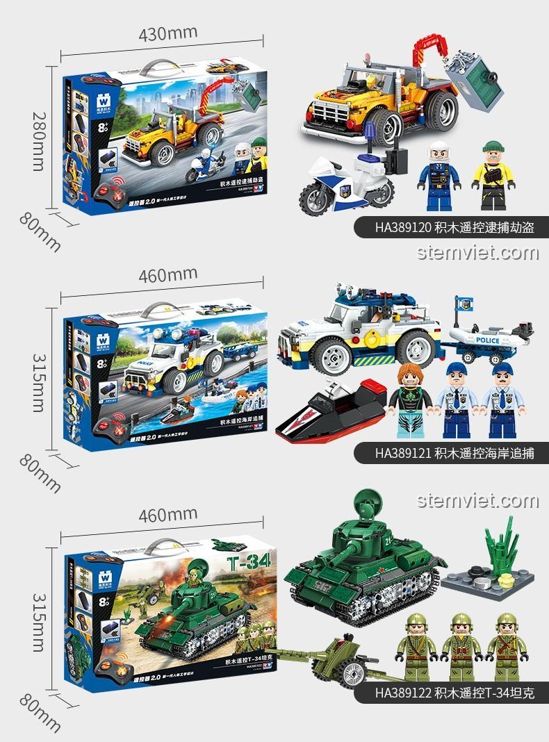 Điểm nhấn nổi bật nhất của bộ đồ chơi WISE BLOCK HA389121 chính là khả năng điều khiển từ xa. Bé có thể dễ dàng điều khiển xe cảnh sát và thuyền cảnh sát di chuyển tiến, lùi, rẽ trái, rẽ phải một cách linh hoạt thông qua bộ điều khiển công thái học 2.0. Điều này mang đến trải nghiệm chơi vô cùng sống động và chân thực, giúp bé nhập vai sâu sắc hơn vào các nhiệm vụ truy đuổi.