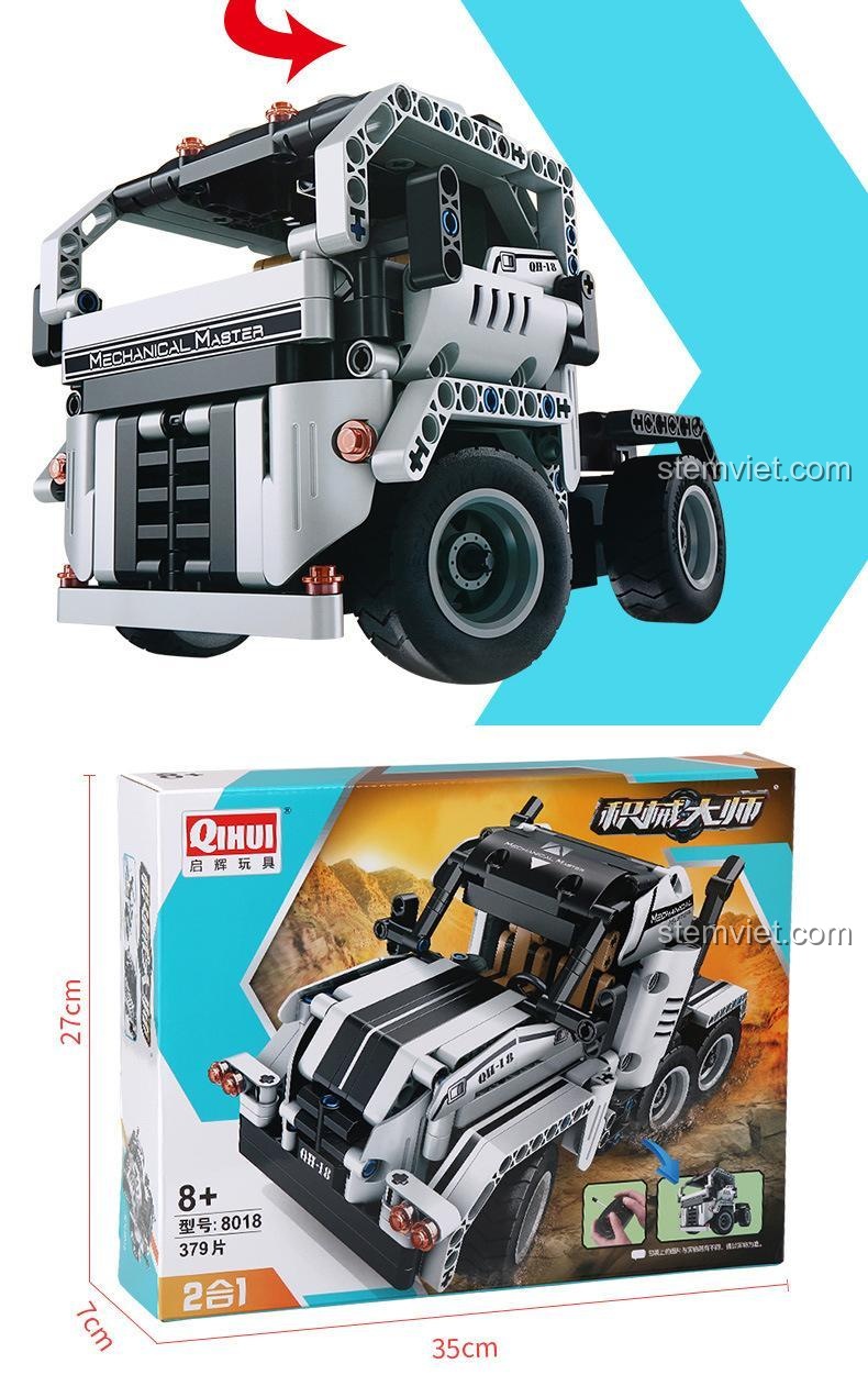 Ngay từ cái nhìn đầu tiên, Xe Đầu Kéo White Knight Qihui đã chinh phục mọi ánh nhìn với vẻ ngoài mạnh mẽ, hiện đại. Khoác lên mình tông màu trắng-đen chủ đạo, chiếc xe toát lên vẻ đẹp của một ‘hiệp sĩ’ trên xa lộ, vừa thanh lịch vừa đầy uy lực. Với kích thước sau khi hoàn thiện là 27x11x11 cm, mô hình có tỷ lệ cân đối, cầm rất đầm tay. Điểm đặc biệt của bộ sản phẩm này là việc sử dụng các chi tiết theo chuẩn Technic, với các thanh beam, trục và bánh răng, cho phép tạo ra một kết cấu vững chắc và các chuyển động cơ học mượt mà. Nhưng điều tuyệt vời nhất chính là khả năng biến hình 2 trong 1! Từ cùng 379 mảnh ghép, bé không chỉ lắp được mẫu xe tải đầu kéo hầm hố, mà còn có thể tháo ra và sáng tạo nên một mẫu xe địa hình độc đáo khác. Điều này nhân đôi niềm vui, nhân đôi sự sáng tạo và giúp bé không bao giờ cảm thấy nhàm chán.