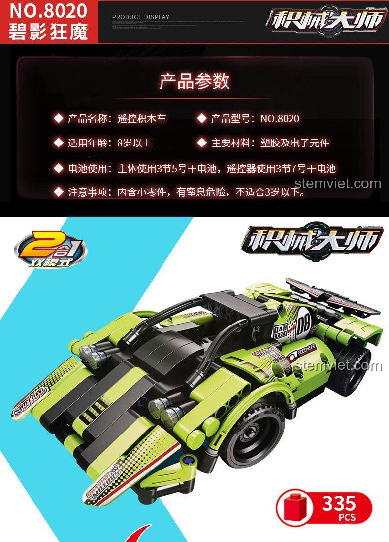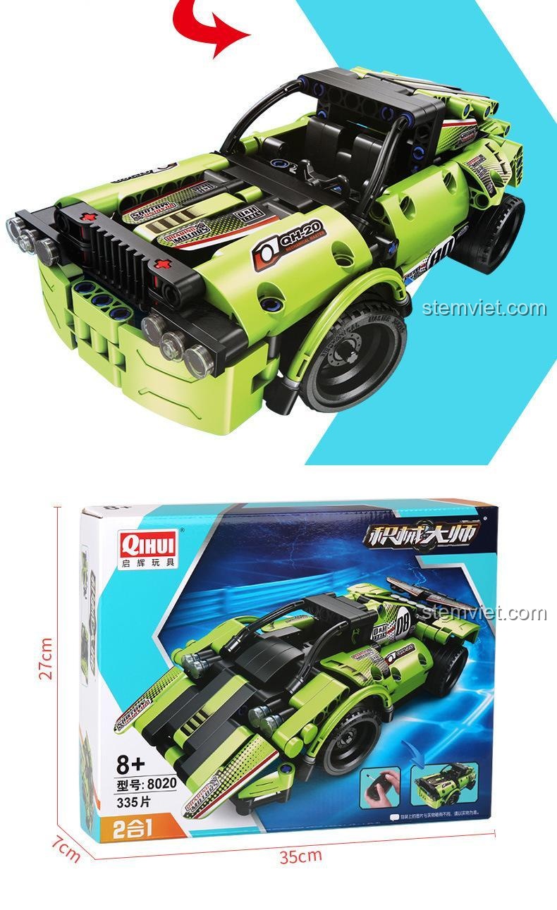Bùng nổ đường đua tưởng tượng cùng bộ lắp ráp xe điều khiển từ xa QIHUI 8020 – Quỷ Xanh Bóng Ma! Đây không chỉ là một món đồ chơi, mà là một dự án STEM đầy hứng khởi dành cho các kỹ sư nhí từ 8 tuổi. Với 335 chi tiết theo chuẩn Technic, bé sẽ được thử thách khả năng lắp ráp, tư duy logic để tạo nên không chỉ một, mà đến hai mẫu xe địa hình cực ngầu: một chiếc xe đua buggy tốc độ và một chiếc xe jeep hầm hố. Trải nghiệm điều khiển từ xa mượt mà, chinh phục mọi địa hình. Đây là lựa chọn thay thế tiết kiệm cho LEGO® Technic, mang lại chất lượng và niềm vui tương đương mà không làm ‘đau ví’ bố mẹ. Hãy để ‘Quỷ Xanh Tốc Độ’ khơi dậy niềm đam mê kỹ thuật và sự sáng tạo vô tận trong con bạn!