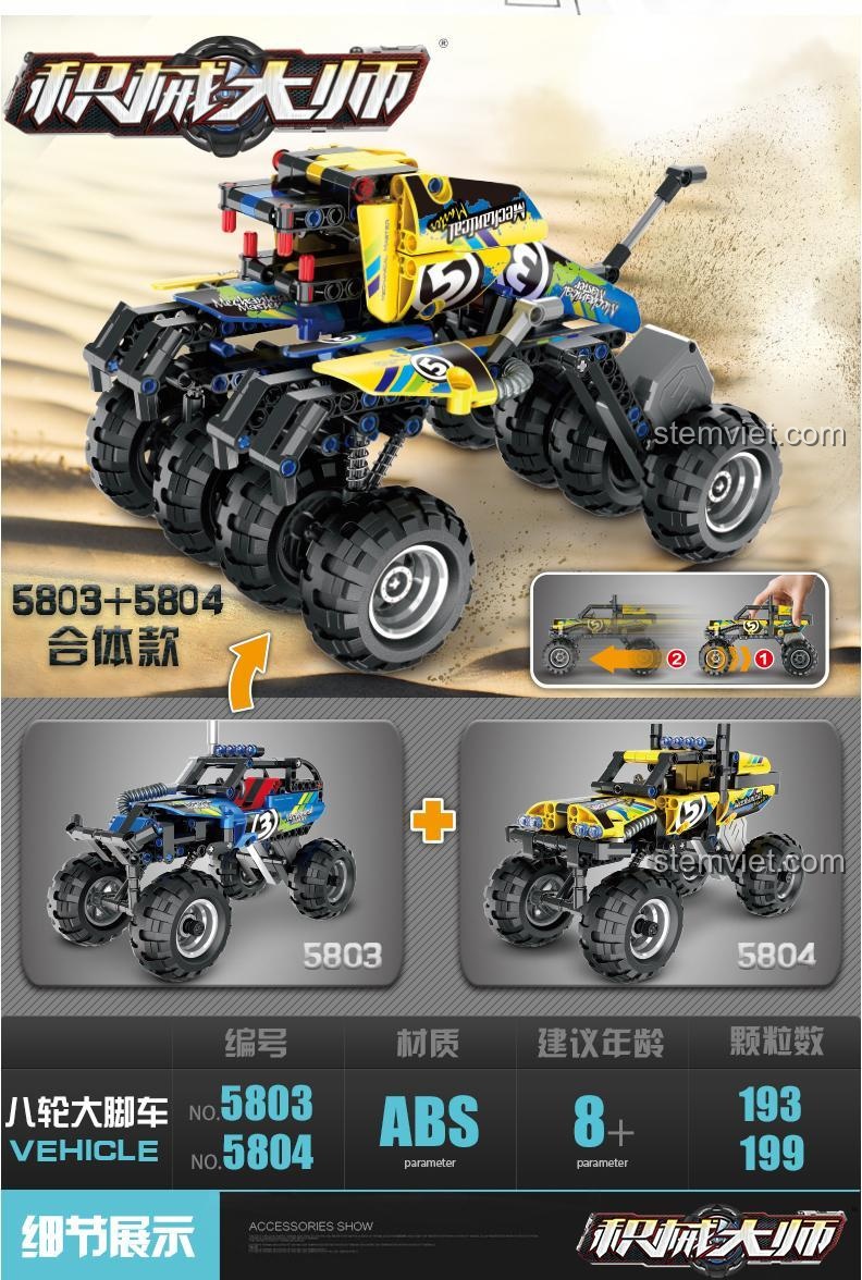 • Đại chiến Monster Truck: Nếu có cả bộ 5804, bé có thể tổ chức một trận đấu đối kháng hoặc kết hợp chúng lại để tạo thành đội xe hùng mạnh.