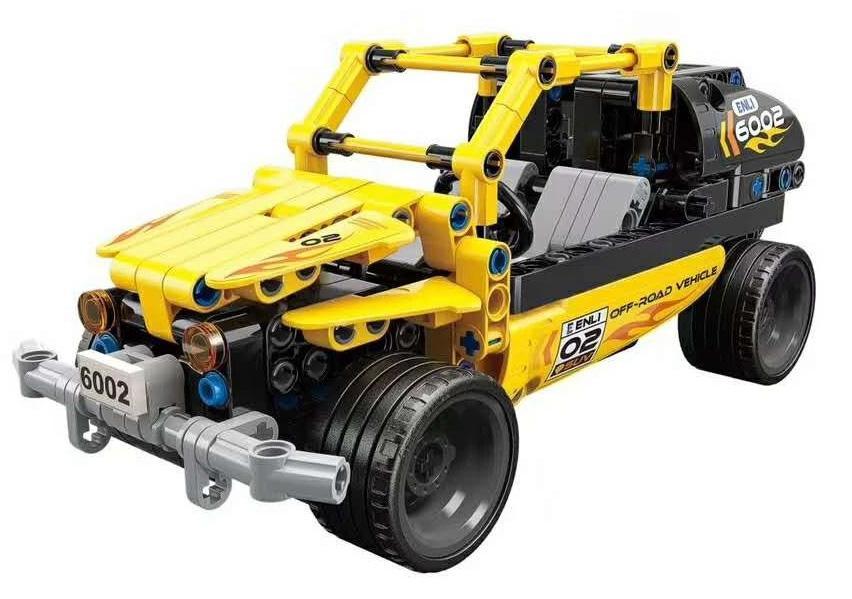 Ngay từ cái nhìn đầu tiên, Mô hình xe đua địa hình 6002 đã chinh phục mọi ánh nhìn bằng vẻ ngoài cực ngầu và mạnh mẽ. Khoác lên mình bộ áo Vàng-Đen nổi bật, chiếc xe toát lên một năng lượng đầy tốc độ và sự táo bạo. Từng chi tiết được thiết kế theo phong cách Technic đặc trưng, để lộ bộ khung và các cơ cấu cơ khí bên trong, kích thích trí tò mò và đam mê khám phá của các bé trai. Những bánh xe cao su cỡ lớn với gai lốp sâu không chỉ tăng thêm vẻ hầm hố mà còn đảm bảo độ bám đường tuyệt vời trên mọi bề mặt. Với kích thước sau khi lắp ráp dài 18.5 cm, rộng 8.4 cm và cao 7.2 cm, chiếc xe có vóc dáng cân đối, vừa vặn trong vòng tay của bé, sẵn sàng cho mọi cuộc đua. Từ cản trước vững chãi, khung bảo vệ chắc chắn cho đến buồng lái đơn giản mà tinh tế, tất cả tạo nên một tổng thể hài hòa, một cỗ máy off-road thực thụ đang chờ được conปลุกพลัง.
