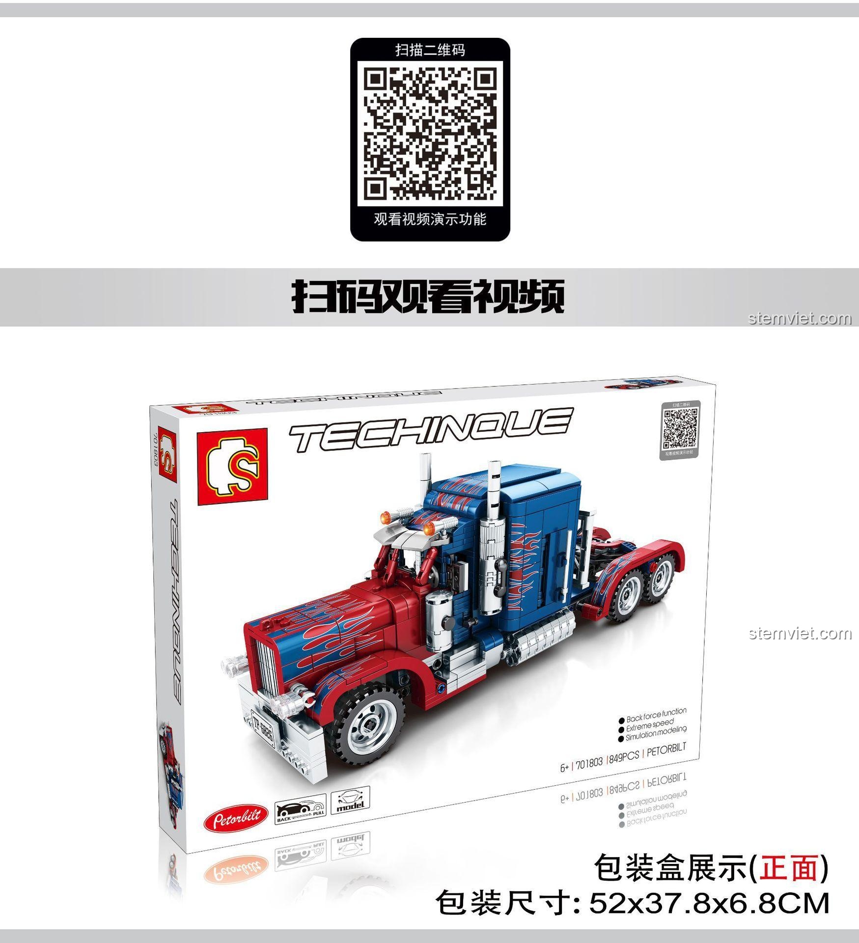 Bộ đồ chơi mô hình SEMBO 701803 Xe Tải Peterbilt 389 Kéo Lùi Màu Optimus Prime là một kiệt tác thu nhỏ, được thiết kế tỉ mỉ đến từng chi tiết. Với màu sắc chủ đạo là đỏ và xanh dương, cùng các điểm nhấn màu xám bạc, mô hình tái hiện hoàn hảo vẻ ngoài đặc trưng của chiếc Peterbilt 389 trong phim Transformers. Từ lưới tản nhiệt mạ chrome sáng bóng, ống xả kép cao vút, đến các đường nét khí động học mạnh mẽ, mỗi mảnh ghép đều góp phần tạo nên một tổng thể ấn tượng. Mặc dù không có tỉ lệ mô hình cụ thể, nhưng kích thước của xe sau khi lắp ráp đủ lớn để bé có thể dễ dàng cầm nắm và tương tác. Đặc biệt, nội thất bên trong xe được mô phỏng tinh xảo với ghế lái, vô lăng, và thậm chí là một khu vực nghỉ ngơi nhỏ gọn, giúp bé hình dung rõ hơn về cuộc sống của một tài xế xe tải đường dài. Vẻ đẹp chi tiết này không chỉ làm hài lòng những người yêu xe mà còn kích thích sự khám phá và óc quan sát của các bé trai.