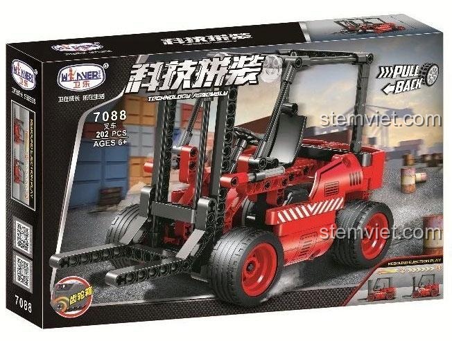 Điểm nhấn đặc biệt của đồ chơi lắp ghép 7088 chính là tính năng động cơ kéo lùi mạnh mẽ. Chỉ cần kéo lùi xe về phía sau và thả tay, chiếc xe nâng sẽ tự động lao về phía trước với tốc độ ấn tượng, mang lại niềm vui và sự phấn khích cho bé trong mỗi lần chơi. Tính năng này không chỉ tăng cường yếu tố giải trí mà còn giúp bé hiểu thêm về nguyên lý truyền động cơ bản.