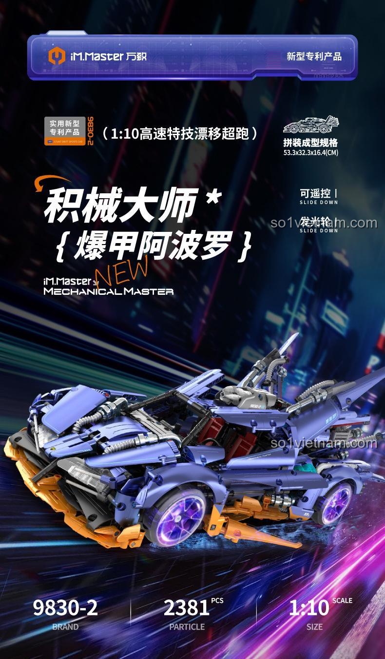 Ngay từ cái nhìn đầu tiên, Siêu xe Apollo IM.Master đã chinh phục mọi ánh nhìn bằng một thiết kế hầm hố, đậm chất tương lai. Từng đường nét góc cạnh, từ cánh gió khí động học đến hốc hút gió lớn, tất cả đều toát lên vẻ mạnh mẽ của một mãnh thú Sẵn sàng lao về phía trước. Khoác lên mình lớp sơn mạ điện cao cấp với tông màu tím huyền bí kết hợp cùng các chi tiết màu cam rực lửa, chiếc xe trở thành một tác phẩm nghệ thuật thực sự. Với tỉ lệ 1:10 chuẩn xác, mô hình có kích thước ấn tượng dài tới 53.3 cm, rộng 32.3 cm, tạo nên một sự hiện diện đầy uy lực. Mọi chi tiết, từ buồng lái, động cơ, cho đến hệ thống treo, đều được tái hiện một cách tỉ mỉ, mang đến một trải nghiệm chân thực không chỉ khi chơi mà còn khi trưng bày. Đây chính là món quà mà bất kỳ cậu bé nào cũng tự hào khi đặt trong phòng mình.