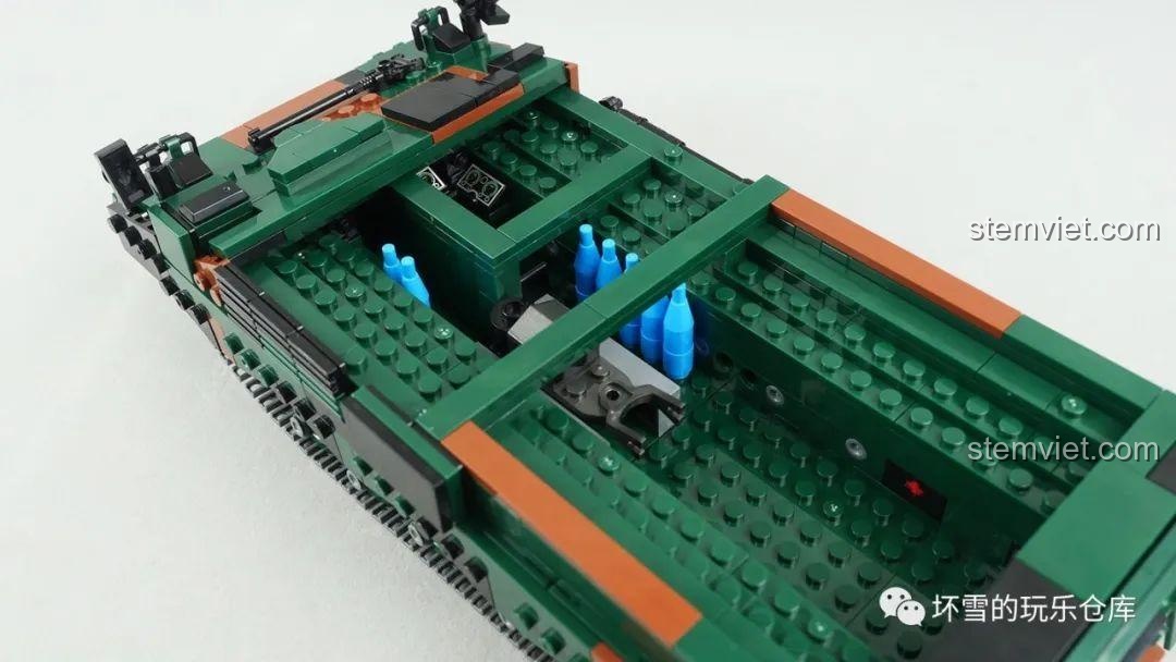 Ngoài ra, mô hình còn có cửa khoang sau có thể mở ra, để lộ nội thất chi tiết bên trong, bao gồm cả mô phỏng bộ nạp đạn. Điều này khuyến khích bé khám phá và tìm hiểu sâu hơn về cấu trúc bên trong của xe pháo. Với kiểu chi tiết tương thích LEGO®, bé có thể dễ dàng kết hợp các mảnh ghép này với các bộ đồ chơi khác để tạo ra những công trình quân sự phức tạp hơn, mở rộng khả năng sáng tạo không giới hạn. Bộ lắp ráp Xingbao Pháo Tự Hành PzH-2000 thực sự là một món đồ chơi mô hình đầy đủ tính năng và giá trị.