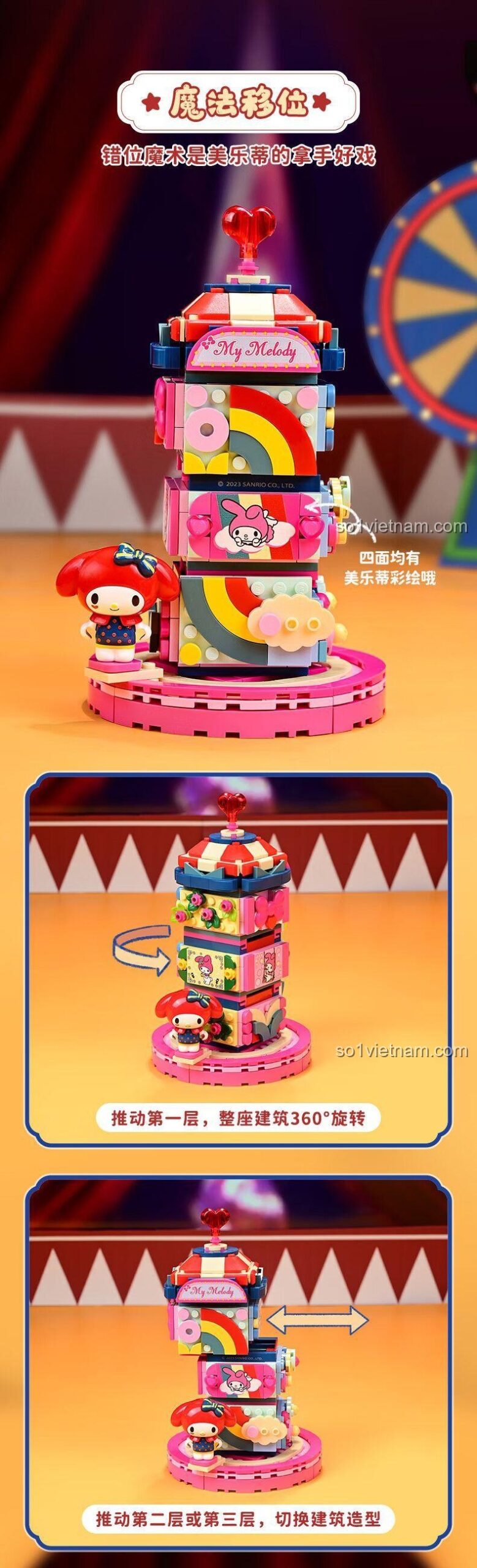 Trải Nghiệm Hiệu ứng dịch chuyển ảo thuật Với Bộ lắp ghép Keeppley K20824 Gánh Xiếc Phép Thuật Của My Melody (346 mảnh ghép)