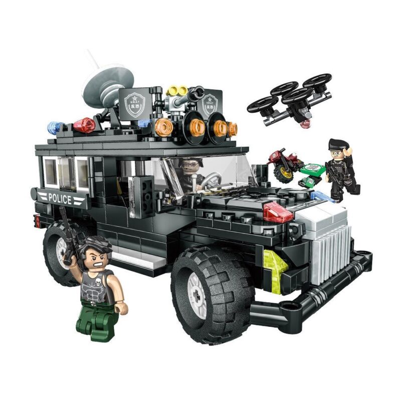 Bộ lắp ráp Xe Tuần Tra Bọc Thép Tyrannosaurus 1577 không chỉ để ngắm nhìn, mà còn chứa đựng vô số tính năng tương tác thú vị, mời gọi bé khám phá và sáng tạo. Bốn bánh xe lớn với lốp cao su có rãnh sâu giúp xe di chuyển trơn tru trên mọi địa hình, từ sàn nhà nhẵn bóng đến thảm trải gồ ghề. Cửa sau của xe có thể mở lên, tạo thành một không gian để chứa trang bị hoặc vận chuyển nhân lực. Kính chắn gió phía trước cũng có thể điều chỉnh góc nghiêng, tăng thêm phần chân thực cho mô hình. Nhưng điểm đặc biệt nhất làm nên sự khác biệt của đồ chơi mô hình CAYI chính là bộ phụ kiện tác chiến đi kèm. Bé có thể phóng chiếc drone nhỏ từ nóc xe để thực hiện nhiệm vụ do thám từ trên cao, hoặc cử một đặc nhiệm lên chiếc mô tô phân khối lớn để truy đuổi tội phạm qua những con hẻm nhỏ. Sự kết hợp giữa các phương tiện này mở ra một thế giới kịch bản vô tận, giúp bé không bao giờ cảm thấy nhàm chán.
