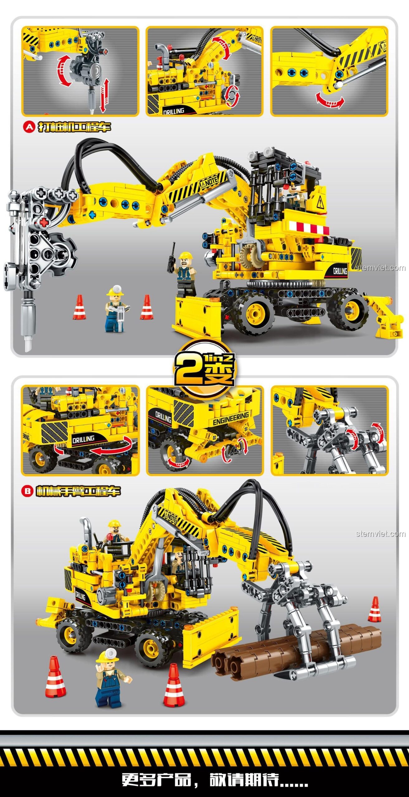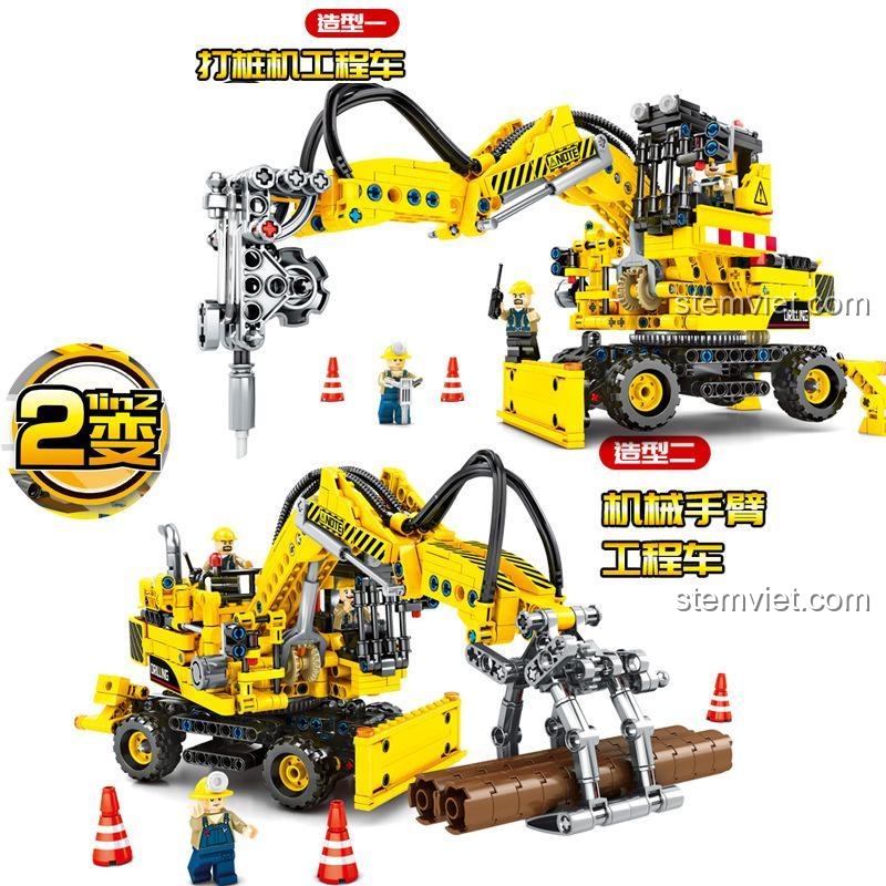 Trải Nghiệm Lắp Được 2 Kiểu Với bộ lắp ráp SEMBO 703701 Xe Công Trình 2 trong 1: Máy Đóng Cọc và Gắp Gỗ (715 mảnh ghép)
