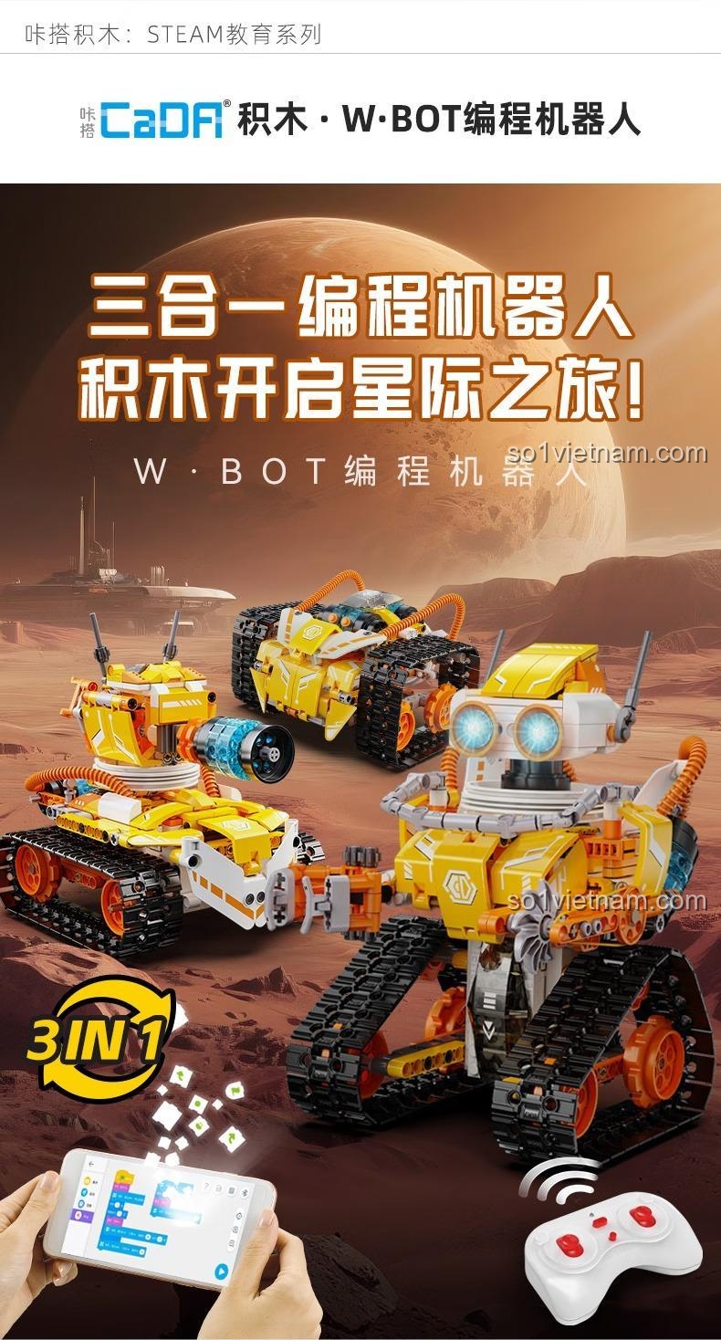 Trải Nghiệm Lắp Được 3 Kiểu & Lập Trình Được Với Bộ Lắp Ráp CaDA C83003 Robot W BOT 3 trong 1 (455 Mảnh Ghép)