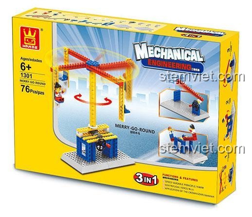 Bộ sản phẩm này là dạng 3 trong 1. Ngoài mô hình đu quay chính, bé có thể tháo ra và lắp ráp thành một chiếc cầu bập bênh hoặc một mô hình cơ cấu tay quay đơn giản để tìm hiểu sâu hơn về cơ khí.
