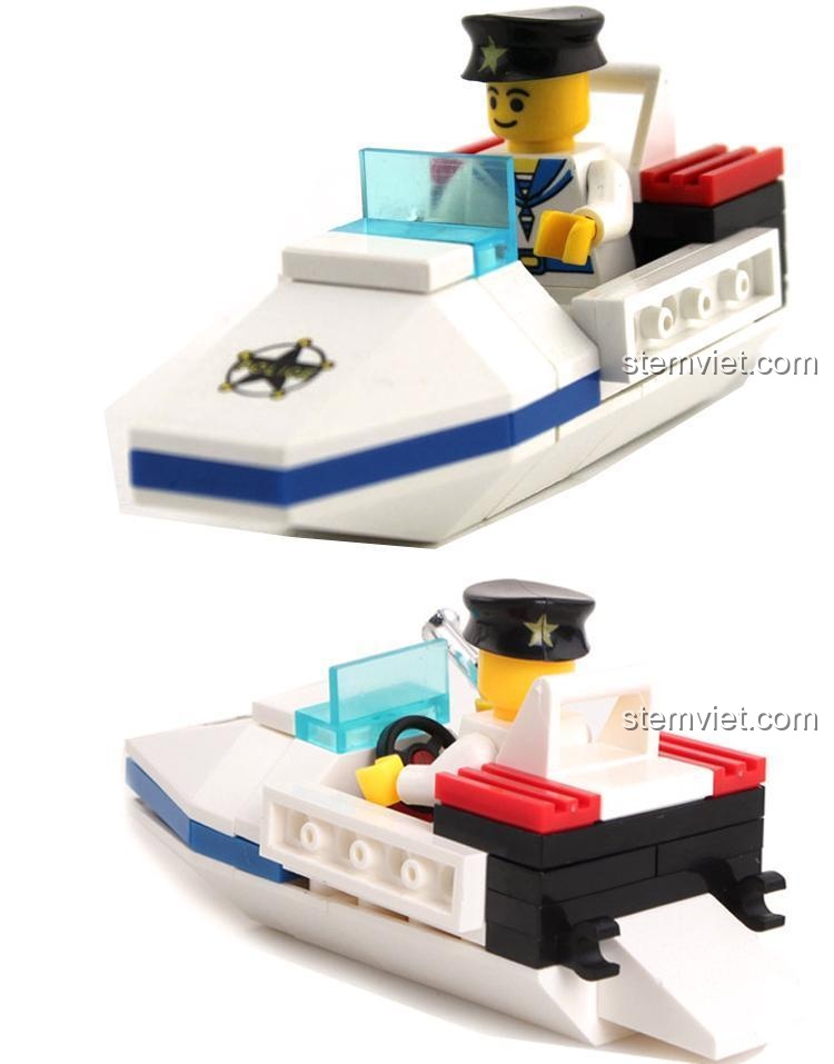 Bộ sản phẩm rất giá trị khi bao gồm tới 5 nhân vật minifigures (cả cảnh sát và tội phạm) và cho phép bé lắp ráp được 4 mô hình riêng biệt: 1 tàu cảnh sát đệm khí, 1 thuyền tội phạm, 1 mô tô nước và 1 trạm gác bờ biển.