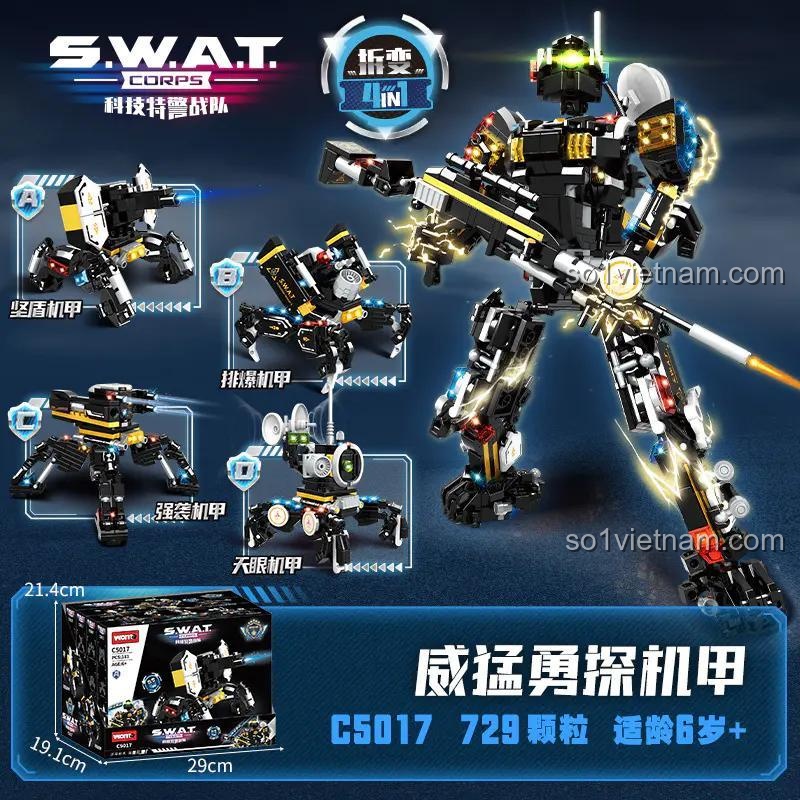 Trải Nghiệm Lắp Được 5 Kiểu Với bộ lắp ghép Woma C5017 Robot Biệt Đội SWAT Dũng Cảm (729 mảnh ghép)