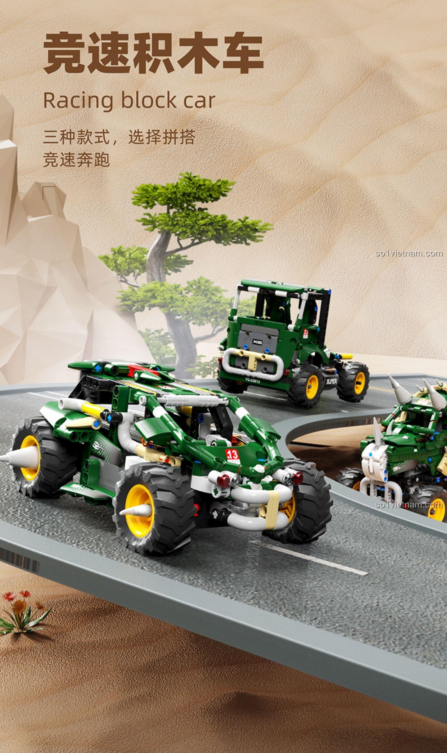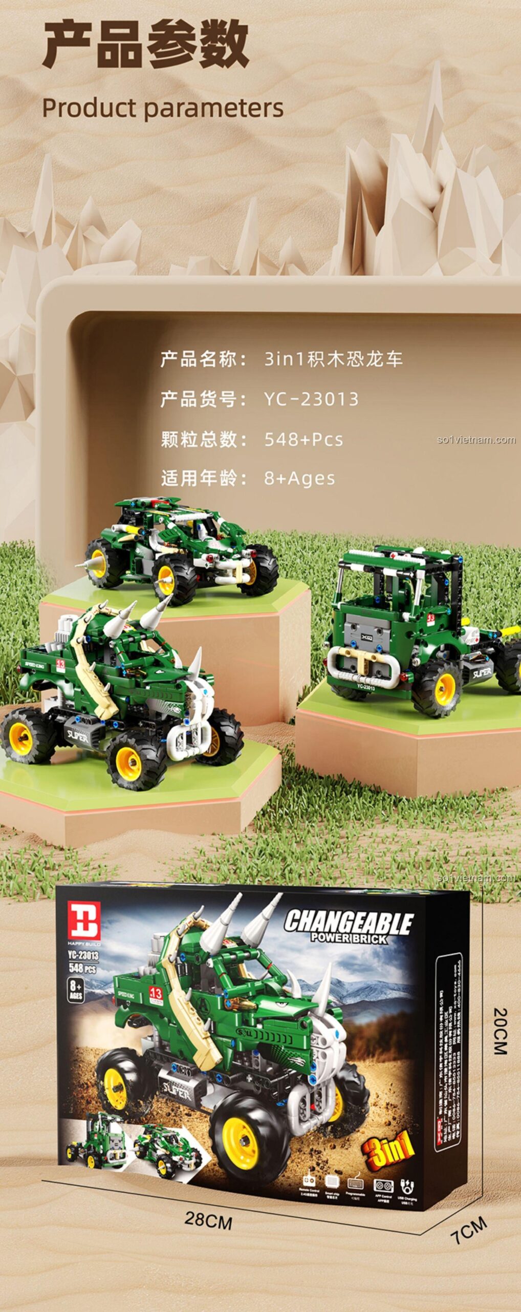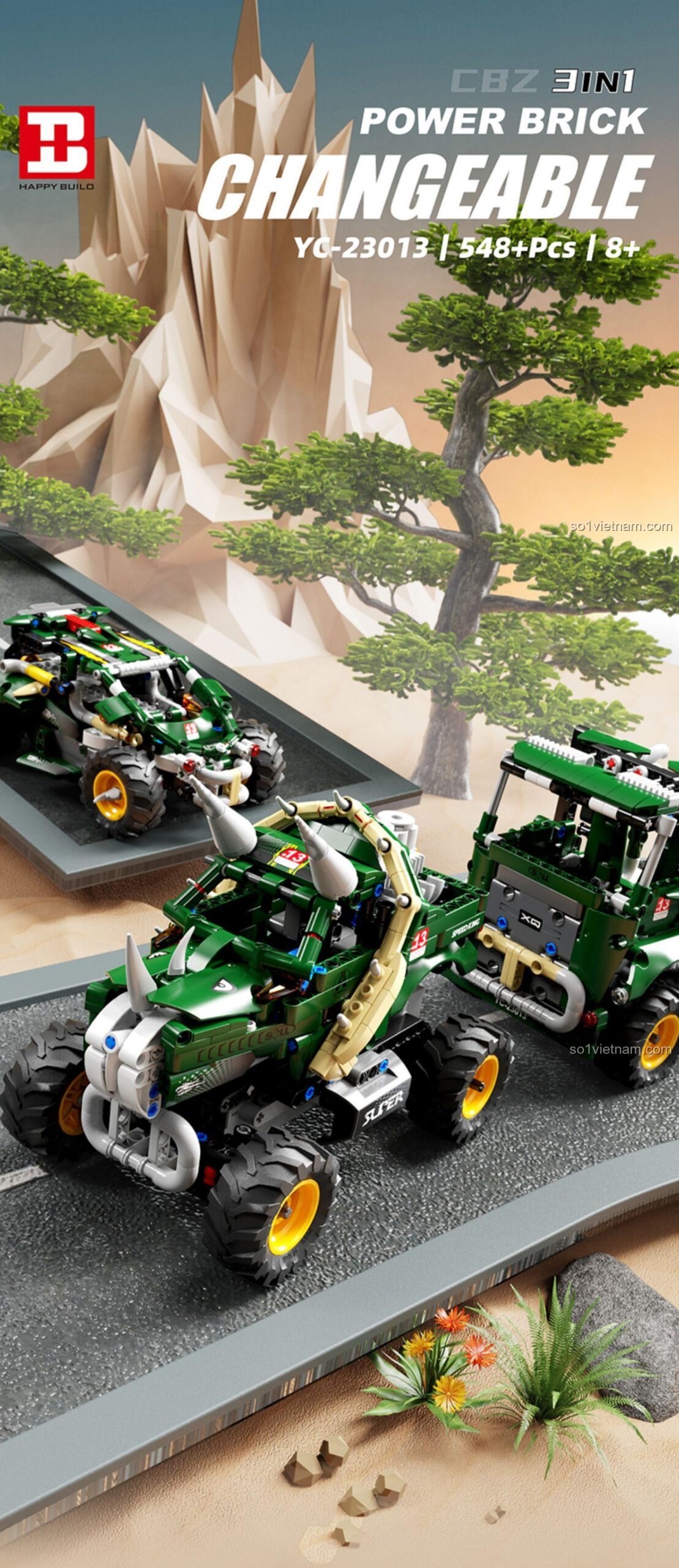 Trải Nghiệm Lắp Ráp 3 Kiểu Xe Với Bộ Đồ Chơi Happy Build YC-23013 Xe Khủng Long Triceratops (548 Mảnh Ghép)