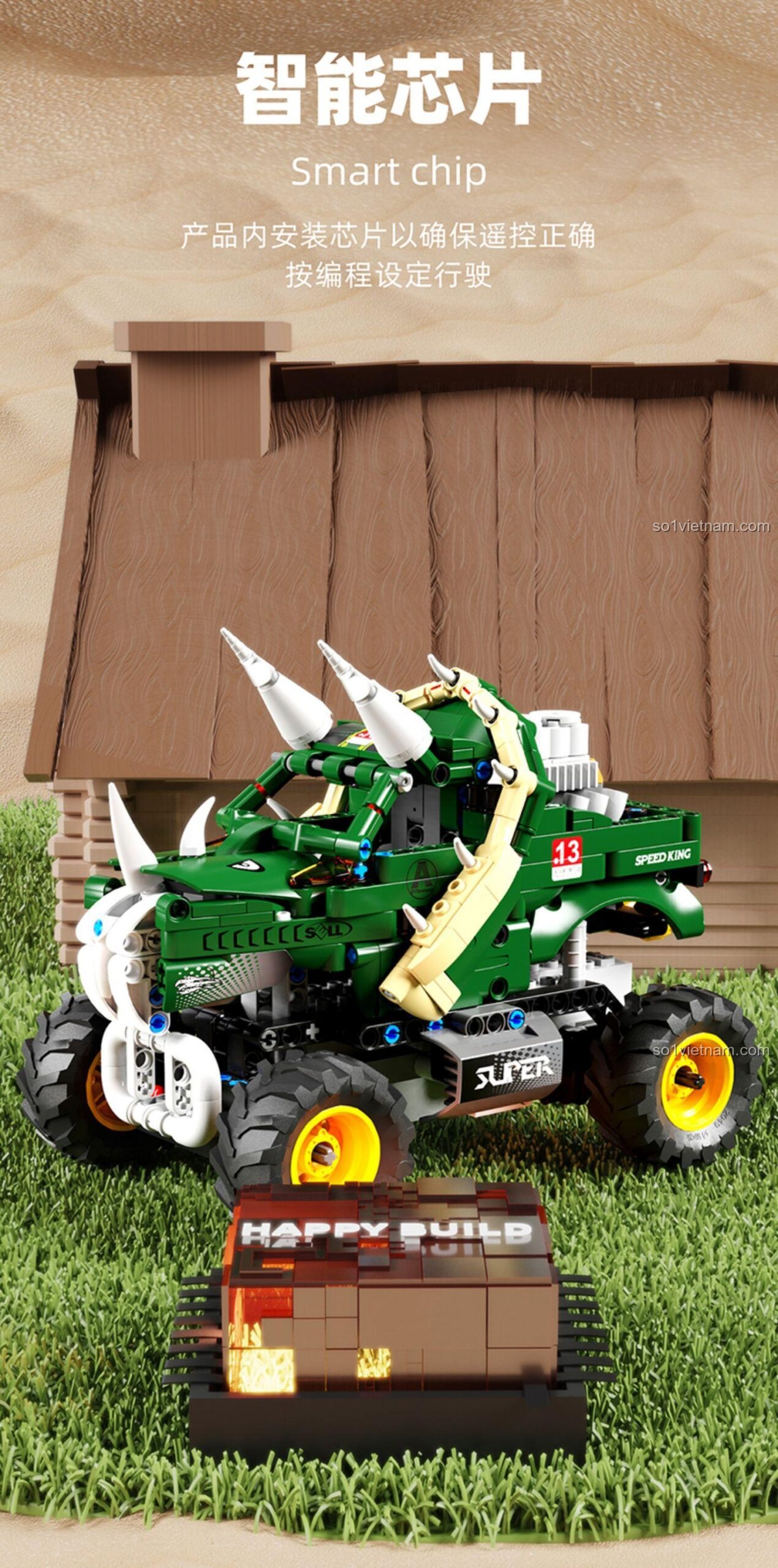 Mẹ có biết không, trong thế giới tưởng tượng của các cậu bé 8 tuổi, luôn có một góc dành cho những sinh vật tiền sử hùng mạnh và những cỗ máy tốc độ kinh hoàng. Lấy cảm hứng từ sự dũng mãnh của khủng long Triceratops – loài vật ăn cỏ hiền lành nhưng sở hữu lớp phòng thủ kiên cố với ba chiếc sừng uy lực, kết hợp với niềm đam mê bất tận dành cho những chiếc xe đua địa hình và xe tải hầm hố, bộ lắp ghép Happy Build YC-23013 đã ra đời. Đây không chỉ là một món đồ chơi, mà là một cánh cổng mở ra kỷ nguyên Jura ngay trong phòng của bé, nơi sức mạnh cổ đại gặp gỡ công nghệ hiện đại. Mỗi mảnh ghép là một bước đưa bé đến gần hơn với việc chinh phục những vùng đất hoang dã, điều khiển một mãnh thú cơ khí do chính tay mình tạo ra. Hãy cùng con trai yêu quý của mẹ bắt đầu cuộc phiêu lưu kỳ thú này, nơi trí tưởng tượng và sự sáng tạo không có giới hạn.