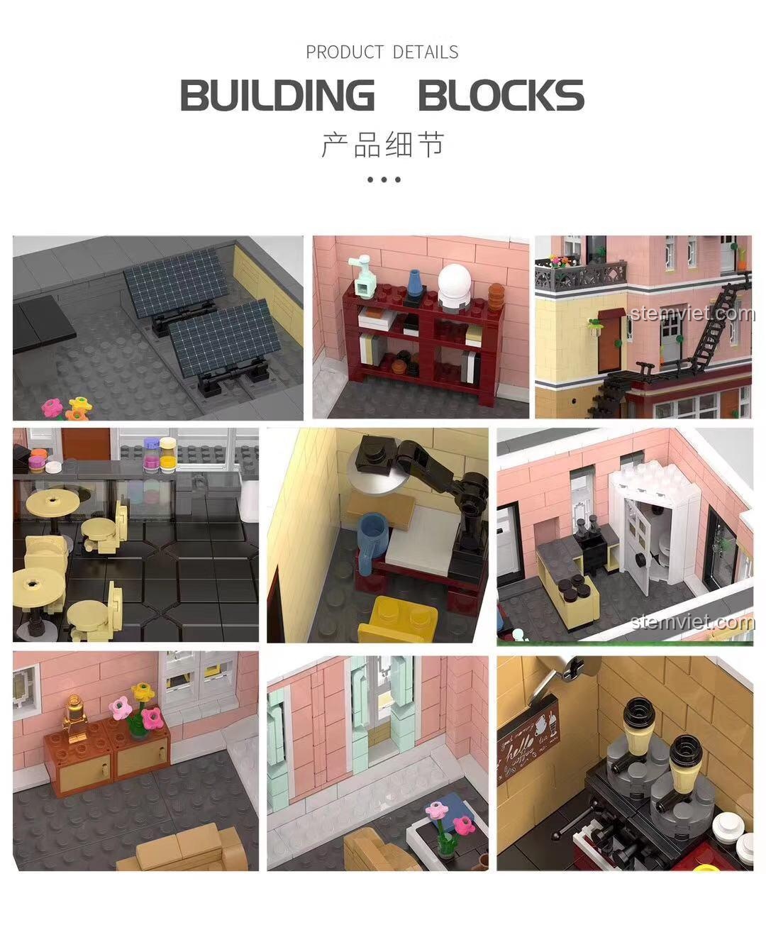 Một trong những tính năng đắt giá nhất của bộ xếp hình UrGe 10180 chính là thiết kế module. Toàn bộ tòa nhà được chia thành các tầng riêng biệt, có thể dễ dàng nhấc ra và lắp lại. Điều này không chỉ giúp quá trình lắp ráp trở nên dễ dàng hơn mà còn mở ra một không gian vui chơi không giới hạn. Bé có thể dễ dàng tiếp cận và sắp xếp lại nội thất bên trong mỗi tầng, hóa thân thành cô chủ tiệm bánh, người dân sống trong căn hộ, hay những vị khách ghé thăm. Tính năng này khuyến khích bé chơi theo kiểu nhập vai, kể chuyện, từ đó phát triển trí tưởng tượng và khả năng giao tiếp. Ngoài ra, trên mái nhà còn có các tấm pin năng lượng mặt trời, một chi tiết nhỏ nhưng giúp bé có những khái niệm đầu tiên về năng lượng sạch và bảo vệ môi trường.