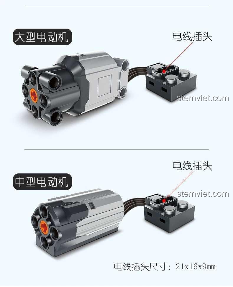 - Động cơ cỡ M (Medium): Lý tưởng cho các ứng dụng cần tốc độ cao, như làm quay bánh xe cho xe đua, cánh quạt cho máy bay.