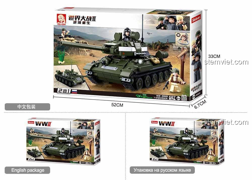 Chào mẹ, mẹ có biết rằng món đồ chơi mà bé sắp sở hữu không chỉ là những khối nhựa đơn thuần không? Nó là cả một câu chuyện lịch sử hào hùng đấy ạ! Bộ lắp ráp Sluban M38-B0689 sẽ đưa con trai yêu của mẹ quay ngược thời gian, trở về mặt trận Thế chiến thứ II để gặp gỡ hai ‘huyền thoại’ của quân đội Đức. Đầu tiên là chiếc xe bán xích Sd.Kfz. 251, được mệnh danh là ‘taxi chiến trường’, chuyên chở những người lính dũng cảm vượt qua mọi địa hình hiểm trở. Tiếp theo là khẩu pháo chống tăng PaK 40, một vũ khí uy lực có thể hạ gục bất kỳ xe tăng nào của đối phương. Khi lắp ráp bộ đồ chơi này, bé không chỉ chơi, mà còn đang chạm tay vào lịch sử, tìm hiểu về những cỗ máy đã làm thay đổi cục diện chiến tranh. Đây là cách tuyệt vời để khơi dậy niềm đam mê lịch sử và khoa học quân sự cho bé, biến những giờ chơi trở nên ý nghĩa và bổ ích hơn bao giờ hết.