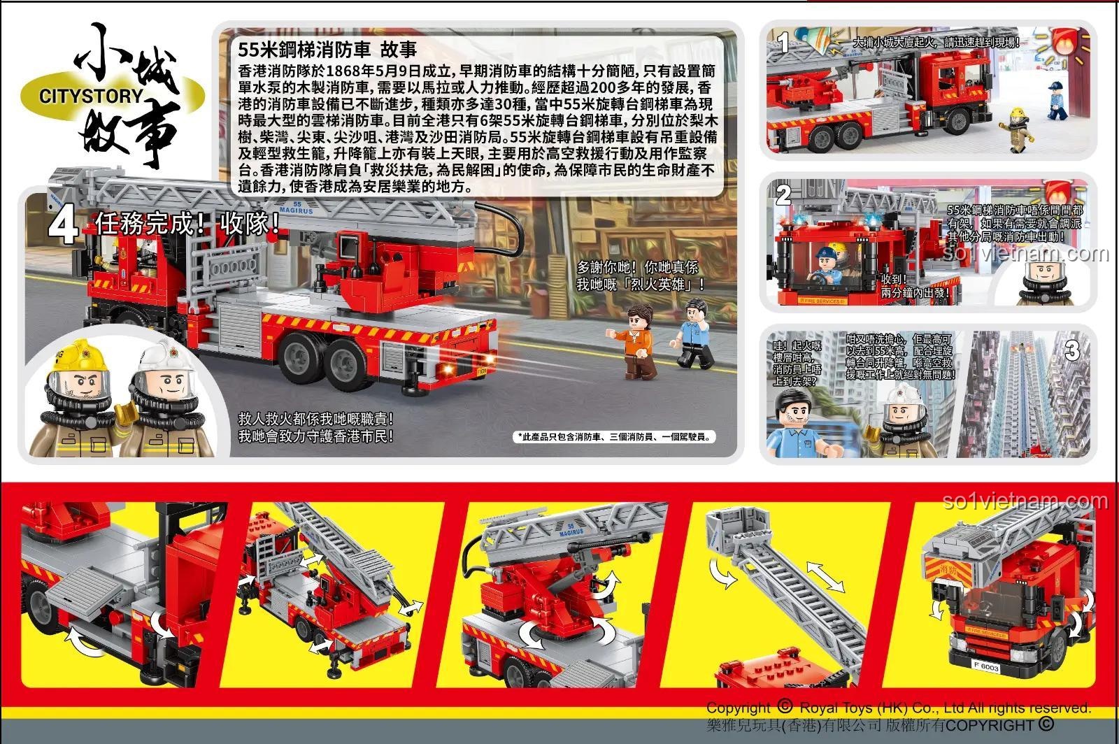 Trải Nghiệm Thang Xoay Vươn Dài Với Bộ Lắp Ráp Royal Toys RT37 Xe Cứu Hỏa Hồng Kông (602 Mảnh Ghép)
