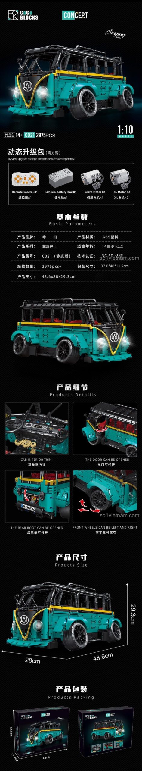 Chào bạn, một người con trai 14 tuổi đầy đam mê và nhiệt huyết! Có bao giờ bạn mơ về những chuyến đi tự do, rong ruổi trên những cung đường bất tận trên một chiếc xe van cổ điển, đậm chất phiêu lưu chưa? Chiếc xe bus Volkswagen T1 huyền thoại không chỉ là một phương tiện, nó là biểu tượng của cả một thế hệ, của tinh thần tự do, của những bản nhạc rock’n’roll và những cuộc hành trình khám phá thế giới. Nó xuất hiện trong vô số bộ phim, MV ca nhạc và trở thành một phần không thể thiếu của văn hóa đại chúng. Lấy cảm hứng từ biểu tượng bất hủ đó, nhưng được biến tấu với một phong cách ‘chất chơi’ hơn, ngầu hơn, đồ chơi mô hình CaCo Blocks đã cho ra đời siêu phẩm Xe Bus Cắm Trại Gầm Thấp Concept C021. Đây không chỉ là một món đồ chơi, mà là một tấm vé đưa bạn trở về với kỷ nguyên vàng của sự tự do, đồng thời thách thức bạn với những kỹ thuật lắp ráp đỉnh cao. Hãy cùng nhau khám phá xem tại sao bộ lắp ráp này lại có sức hút mãnh liệt đến vậy nhé!