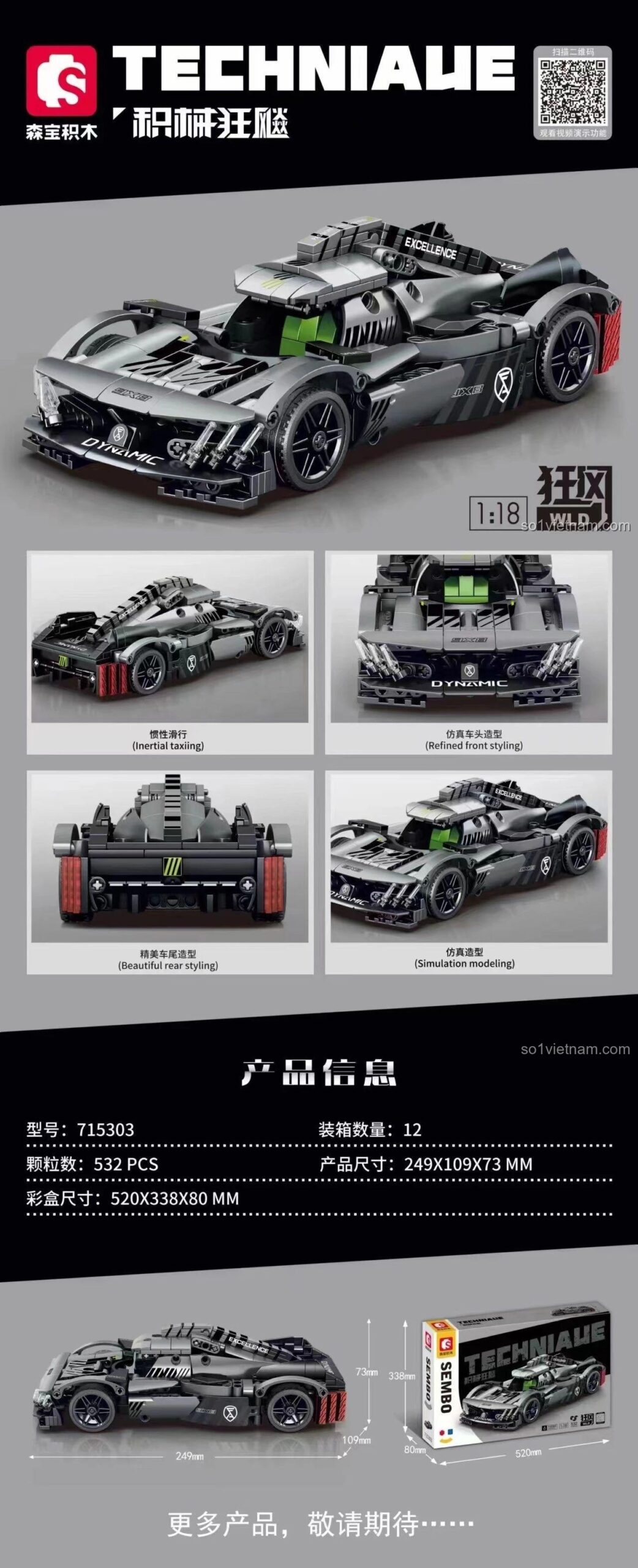 Trải Nghiệm Thiết Kế Hầm Hố Với Đồ Chơi Lắp Ráp Sembo 715303 Siêu Xe Đua Peugeot Warrior (532 Mảnh Ghép)