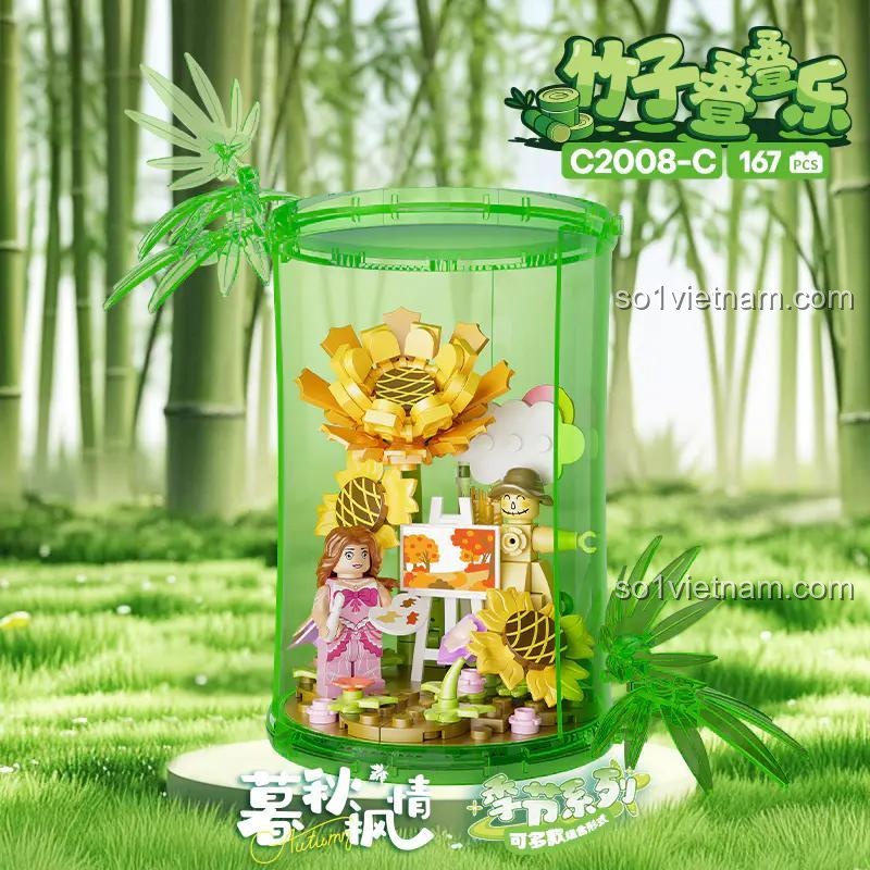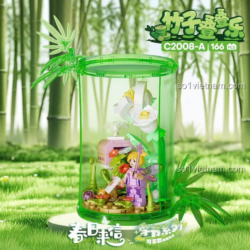 Nhưng điều kỳ diệu nhất chính là khả năng xếp chồng! Bốn ‘đốt tre’ có thể dễ dàng kết nối với nhau, tạo thành một cây tre bốn mùa cao vút, một tác phẩm trang trí độc nhất vô nhị cho góc học tập hay phòng ngủ của bé. Với tổng cộng 656 mảnh ghép được chế tác tinh xảo, màu sắc chủ đạo Xanh lá, Hồng, Vàng, Trắng, Đỏ hài hòa, mỗi chi tiết từ bông hoa, chiếc lá đến cô nàng minifigure xinh xắn đều góp phần tạo nên một tổng thể hoàn mỹ. Kích thước mỗi mô hình sau khi lắp ráp là 19cm (dài) x 8.5cm (rộng) x 15cm (cao), vừa vặn để trưng bày mà không chiếm quá nhiều diện tích.