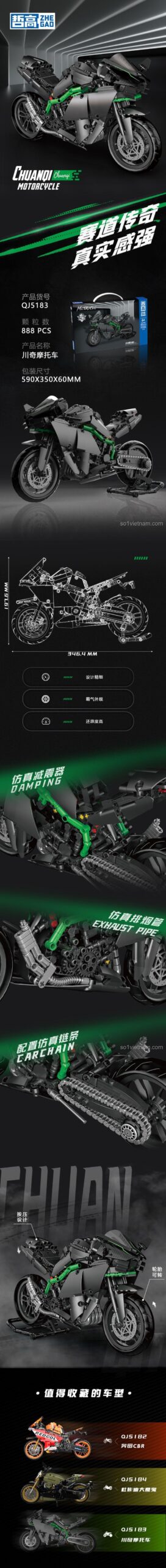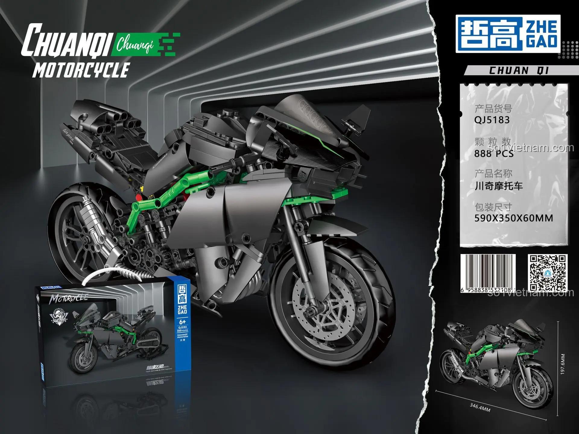 Trải Nghiệm Thiết Kế Technic Hầm Hố Với Bộ Lắp Ráp ZHEGAO QJ5183 Xe Mô Tô Kawasaki Ninja H2R (888 Mảnh Ghép)