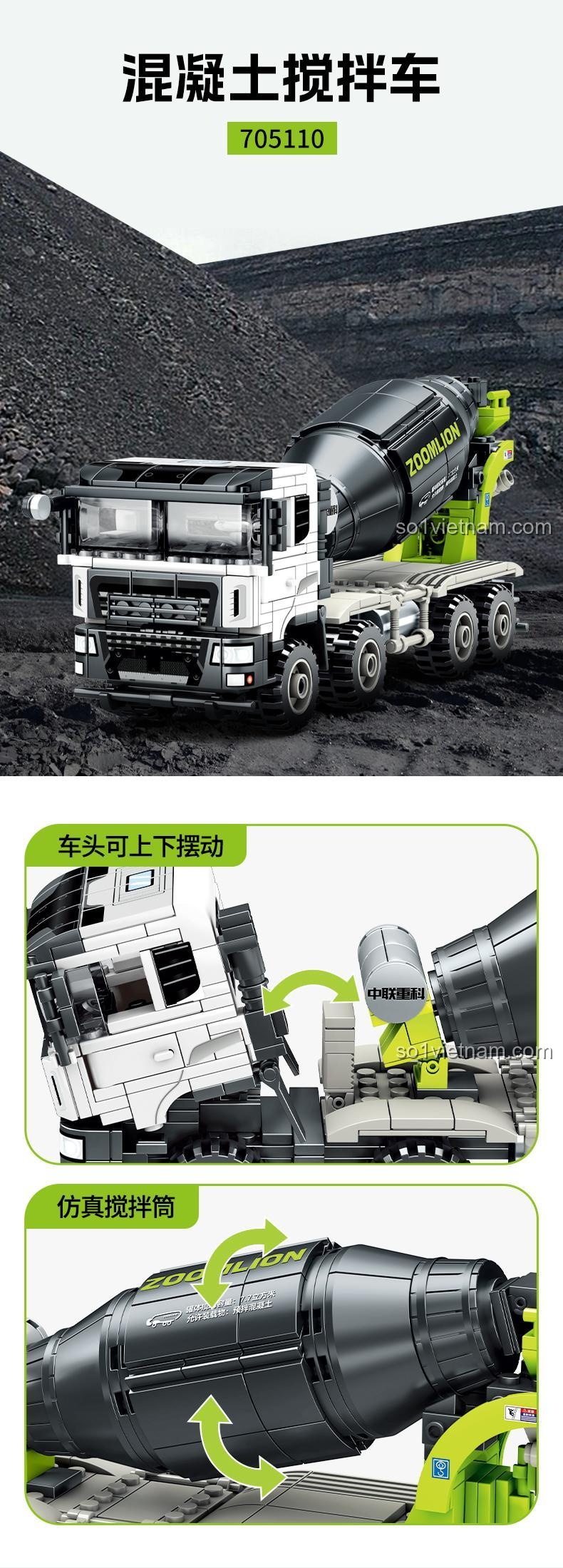 🧠 Học mà chơi, chơi mà học cùng Sembo 705110 Xe Trộn Bê Tông Zoomlion