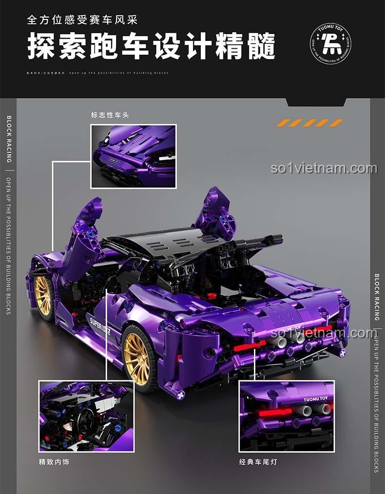 Trải Nghiệm Tỉ lệ 1:14 Với bộ lắp ráp Tuomu T1002 Siêu xe McLaren 720S Tím (1273 mảnh ghép)