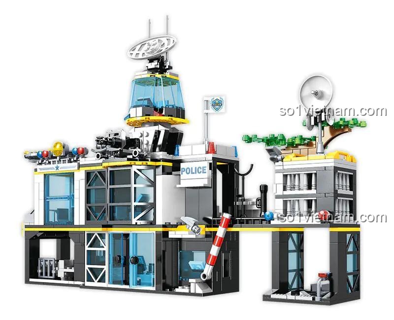 Với 1357 mảnh ghép, đồ chơi xếp hình WOMA C0555 không chỉ là một mô hình, mà là một công trình kiến trúc thực thụ. Tòa nhà trụ sở được thiết kế nhiều tầng, vững chãi với tông màu đen, xám và xanh dương chủ đạo, toát lên vẻ chuyên nghiệp và uy nghiêm của một tổ chức đặc nhiệm. Từng chi tiết nhỏ như ăng-ten vệ tinh, camera an ninh, phòng điều khiển với màn hình máy tính, hay nhà giam kiên cố đều được tái hiện một cách tỉ mỉ. Điểm nhấn đặc biệt là sân bay trực thăng ngay trên nóc nhà, sẵn sàng cho mọi nhiệm vụ khẩn cấp. Nhưng một trụ sở sẽ không thể hoàn hảo nếu thiếu đi đội xe hùng hậu. Bộ sản phẩm này mang đến một đội hình tác chiến toàn diện: một chiếc xe tuần tra nhanh nhẹn, một xe bọc thép hầm hố sẵn sàng phá tan mọi chướng ngại vật, một mô tô truy đuổi linh hoạt và một chiếc trực thăng yểm trợ mạnh mẽ. Tất cả tạo nên một tổng thể hài hòa, hoành tráng, kích thích trí tưởng tượng và mang lại những giờ phút vui chơi không giới hạn.