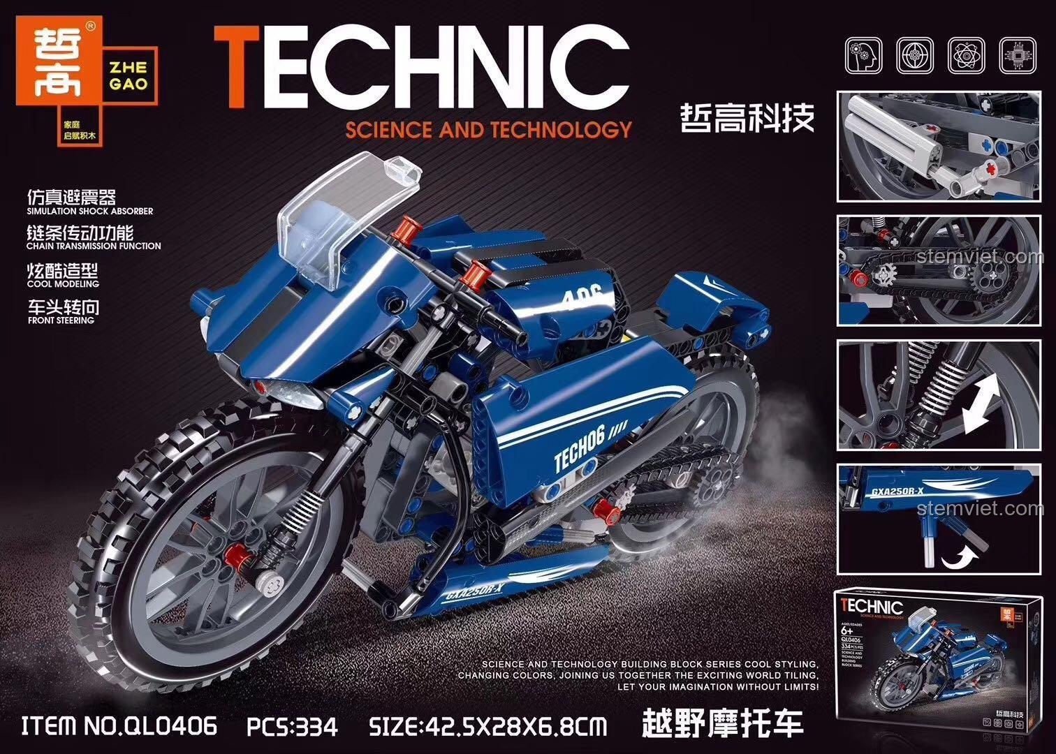 Trải Nghiệm Truyền Động Bằng Xích Với Bộ Lắp Ráp ZHEGAO QL0406 Xe Mô Tô Địa Hình (334 Mảnh Ghép)
