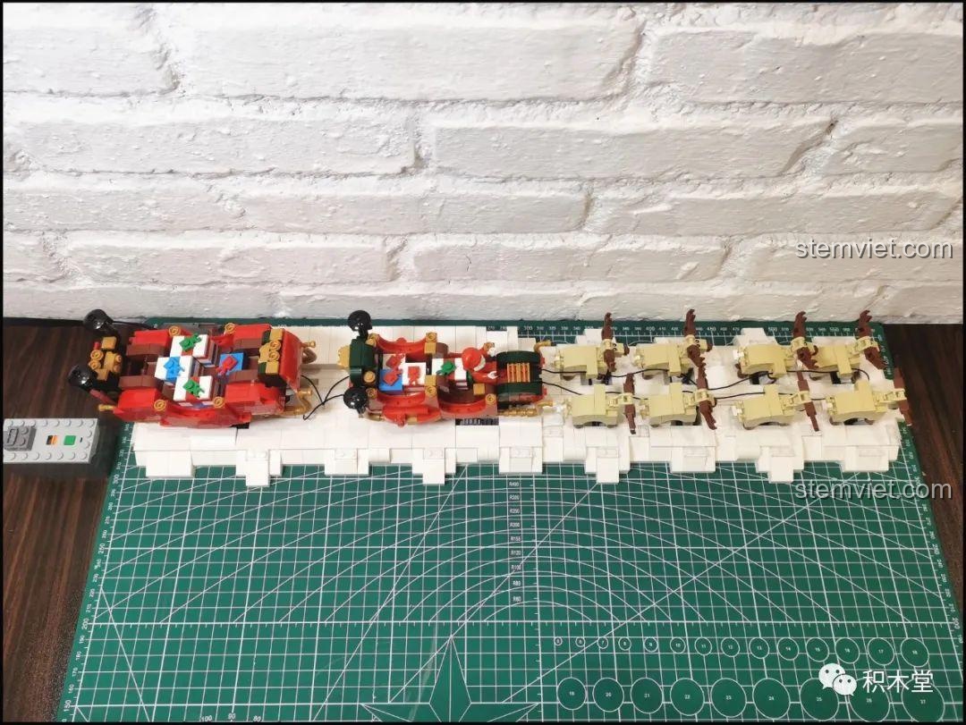 ❓ Kích thước của bộ xếp hình Đoàn xe tuần lộc Giáng sinh sau khi lắp xong là bao nhiêu?