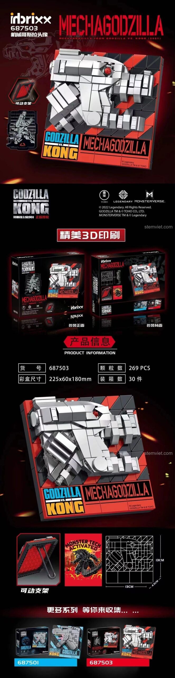 Mẹ có biết không, trong thế giới điện ảnh hoành tráng của các Titan, Mechagodzilla chính là một biểu tượng của sức mạnh công nghệ đỉnh cao, một đối trọng cơ khí được tạo ra để thách thức chính Vua Quái Vật Godzilla. Xuất hiện trong bom tấn “Godzilla vs. Kong”, Kẻ Hủy Diệt Cơ Khí này đã để lại một ấn tượng không thể phai mờ trong lòng các khán giả nhí, đặc biệt là các bé trai 6 tuổi mê mẩn những trận chiến long trời lở đất. Với bộ lắp ghép Tranh phù điêu Mechagodzilla inbrixx, chúng tôi không chỉ mang đến một món đồ chơi, mà là cả một câu chuyện phiêu lưu, một mảnh ghép từ vũ trụ điện ảnh mà bé có thể chạm vào, tự tay xây dựng và tự hào trưng bày. Đây là cơ hội để bé không chỉ xem phim, mà còn sống cùng đam mê, tái hiện lại những khoảnh khắc hùng tráng nhất của quái vật Titan máy móc này.